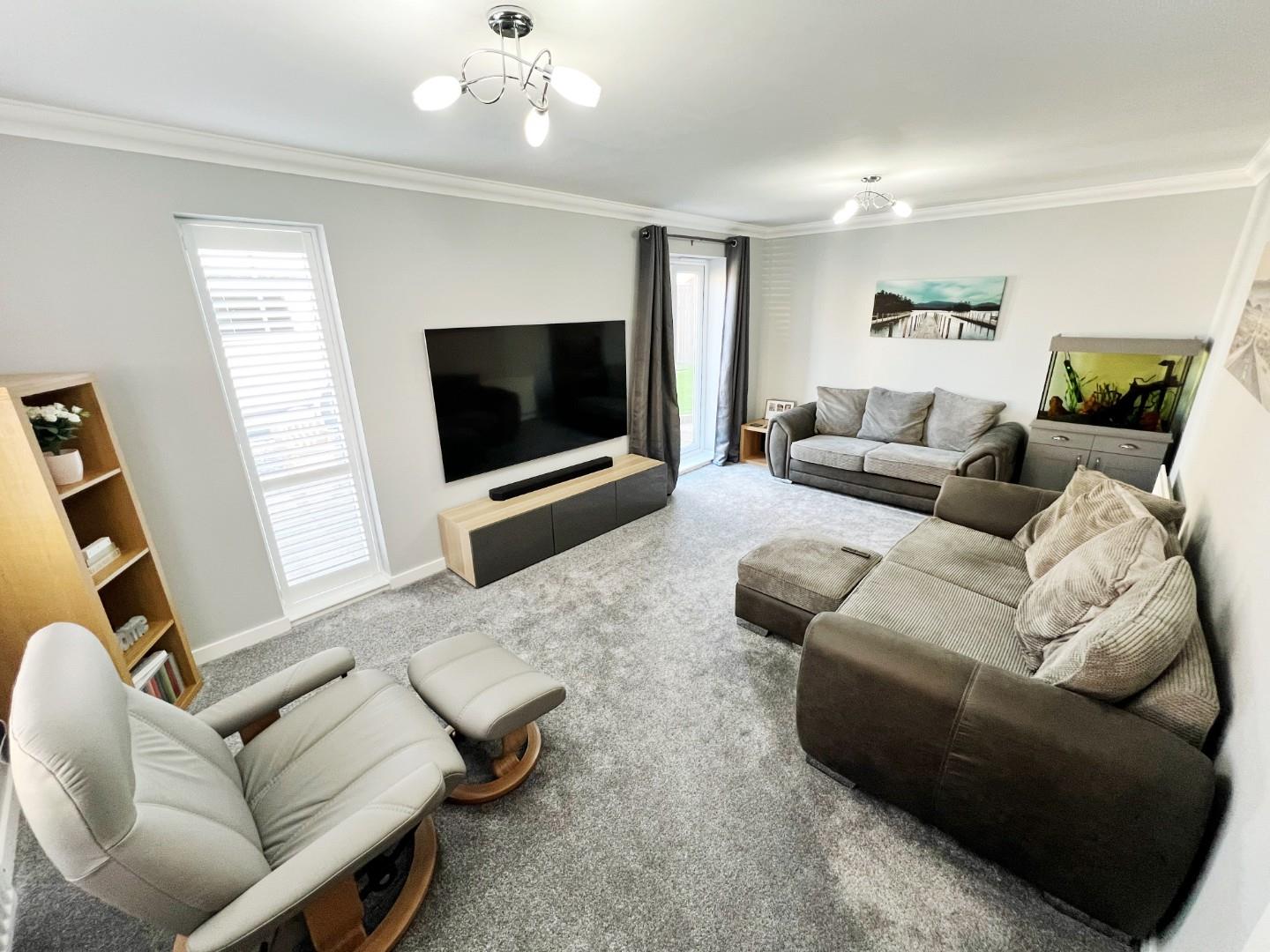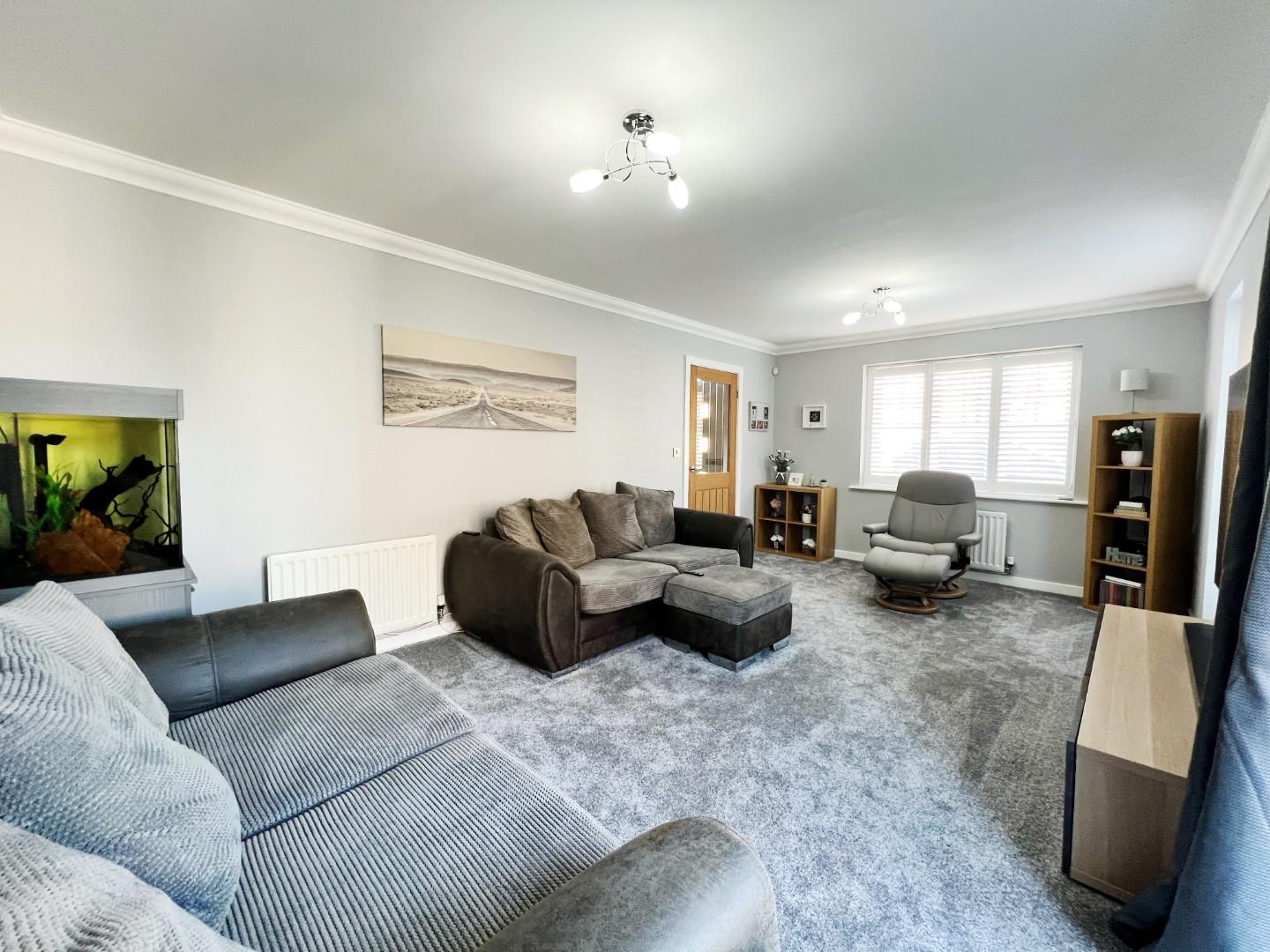 Quality flooring, radiators, uPVC windows with shutter blinds, french doors leading to the rear garden.