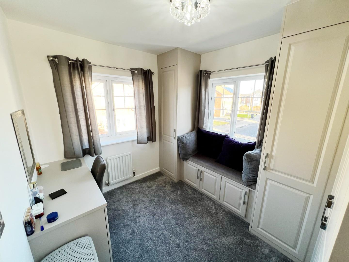 UPVC windows, radiator, fitted wardrobes, dressing table.