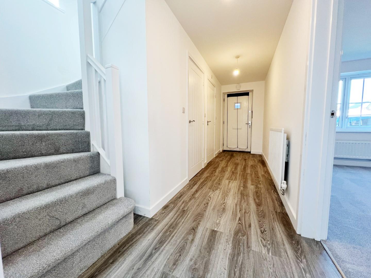 Radiator, stylish flooring, stairs to first floor, large airing cupboard.