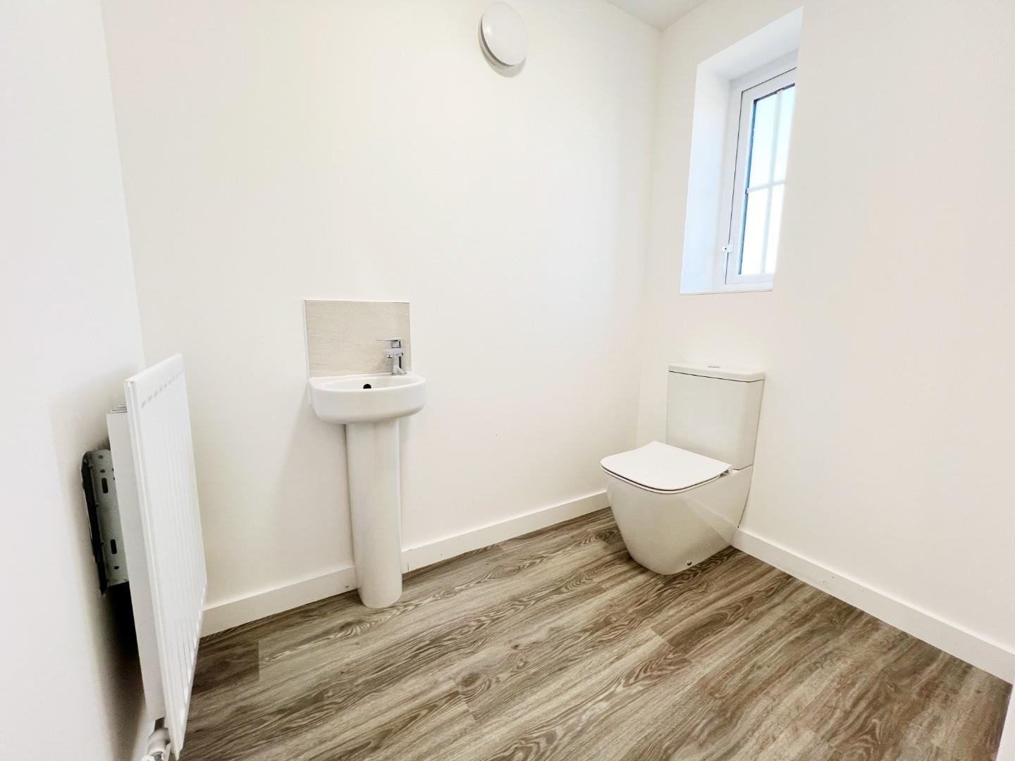 W/C, wash hand basin, uPVC window, radiator, stylish flooring.
