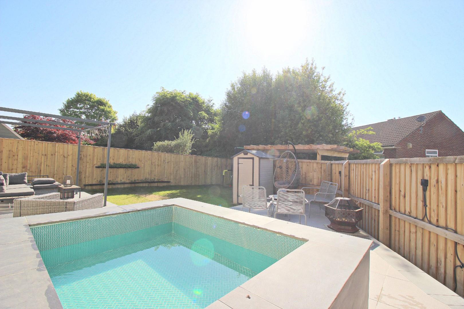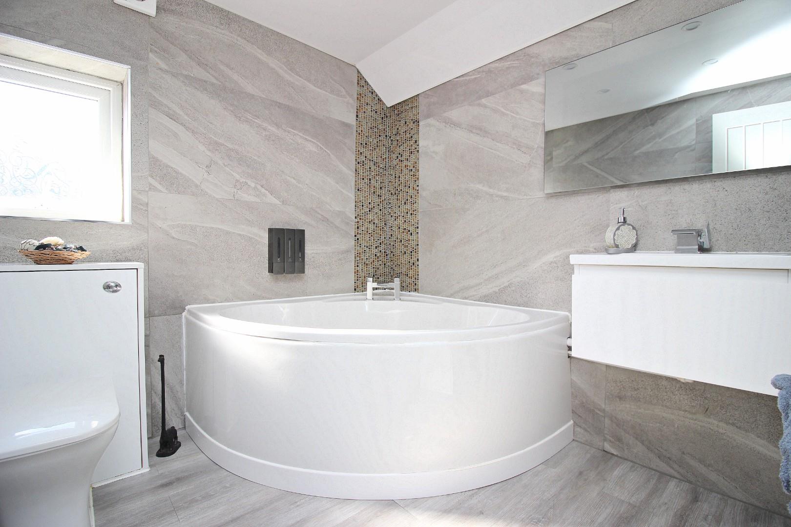 Externally, the front has off-street parking, attractive stone walling, and new turf to be laid shortly. To the rear is a fabulous garden space – generously sized, complete with a custom-built hot tub area, paved walkways, seating zones, and additional storage space to both sides of the home. The rear is the property is to be rendered in the coming weeks.