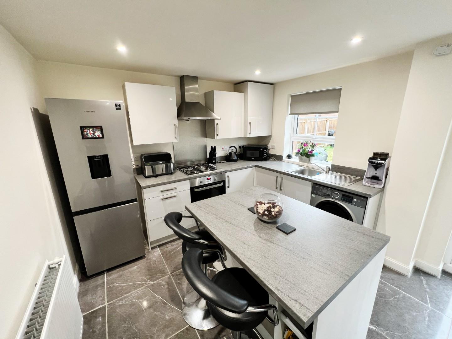 The floorplan briefly comprises of - ENTRANCE HALL with CLOAKROOM/WC, spacious LOUNGE, attractive KITCHEN/BREAKFAST ROOM with a range of high gloss units, central island and built in split level cooking facilities. Whilst to the FIRST FLOOR, there is a landing area which gives access to three BEDROOMS with the master having the added bonus of a stylish En-suite and FAMILY BATHROOM is also located on the first floor. Externally, to the front elevation large block paved driveway which can provide parking for two vehicles, while to the rear there is a good sized enclosed garden which has a lovely decked area.