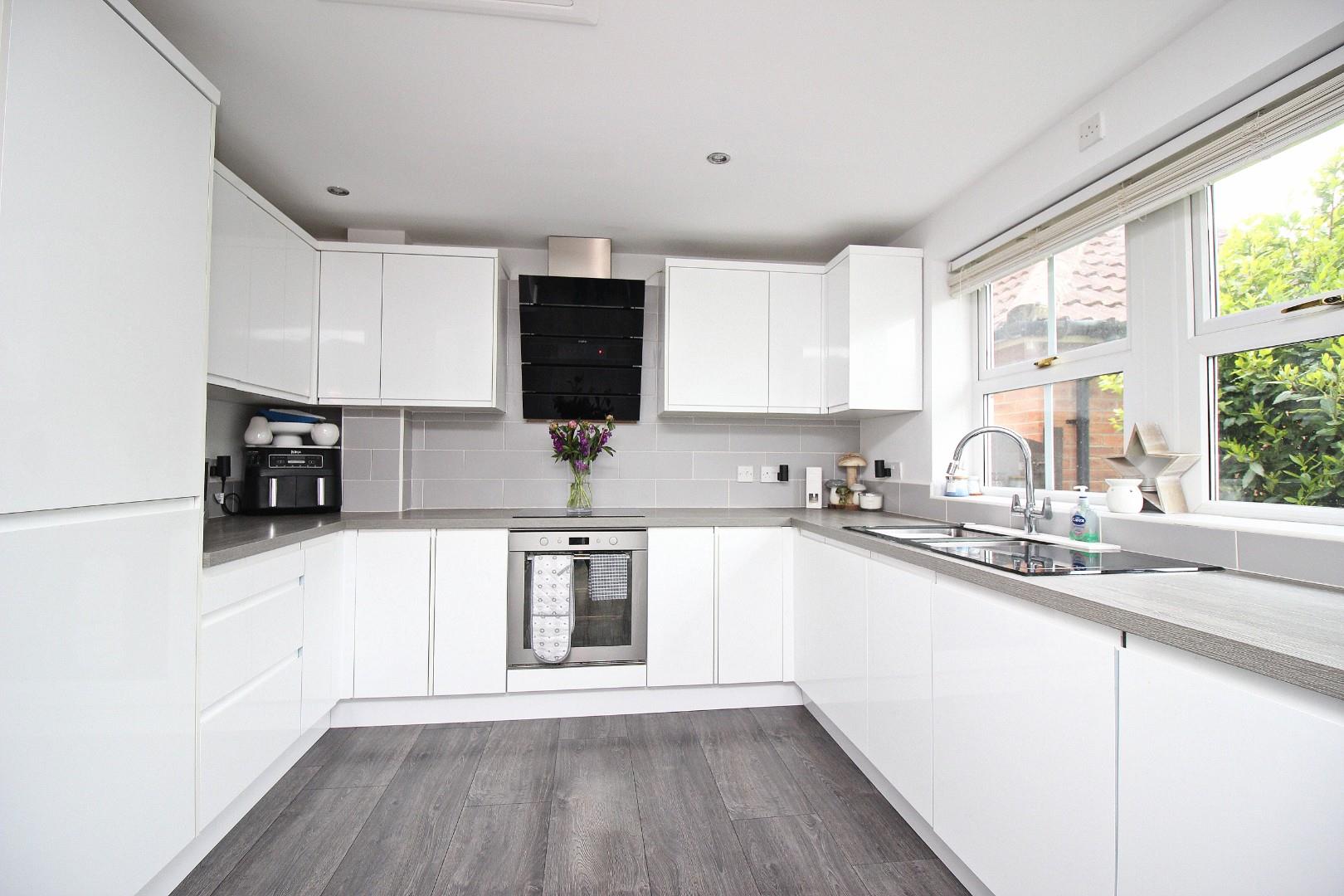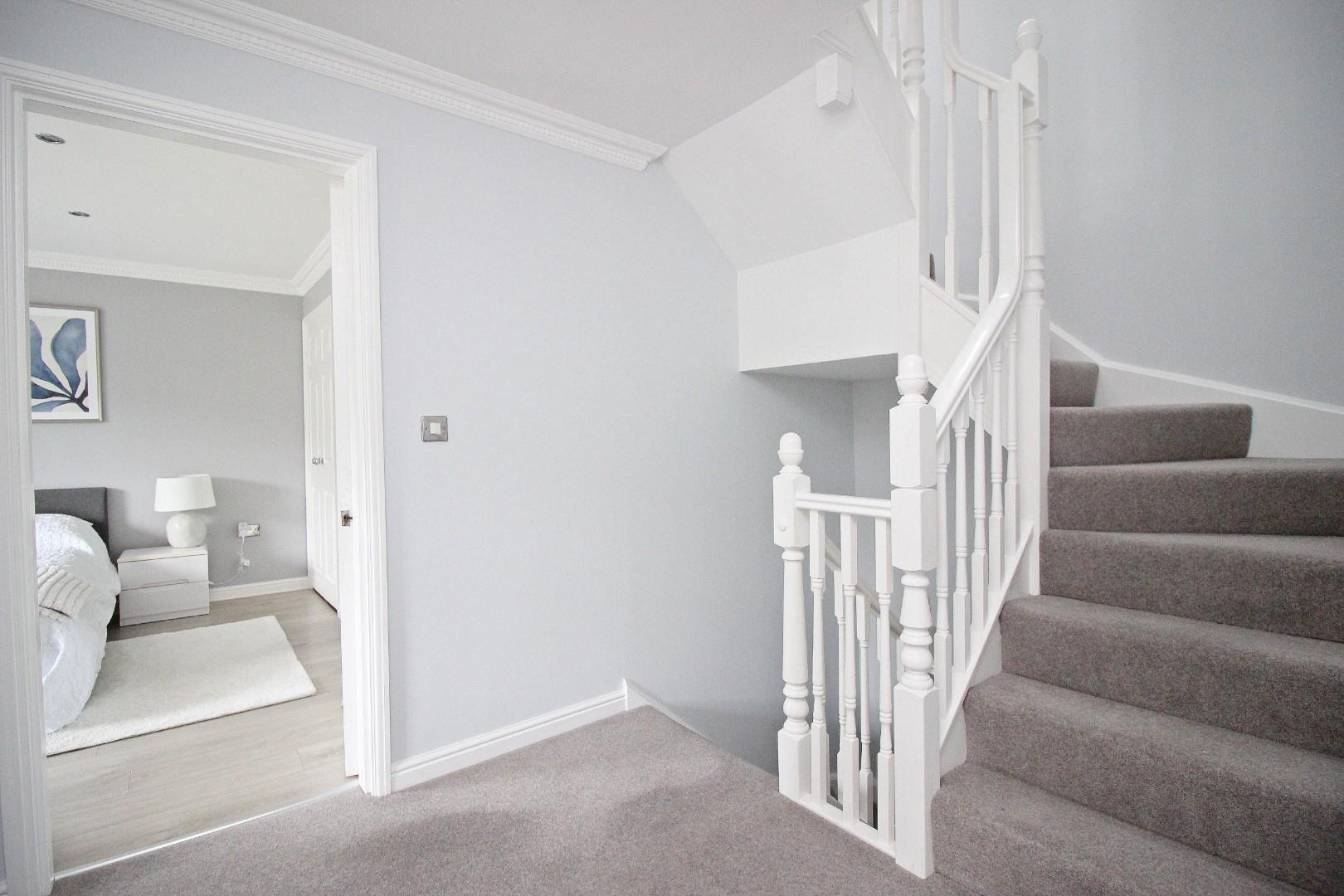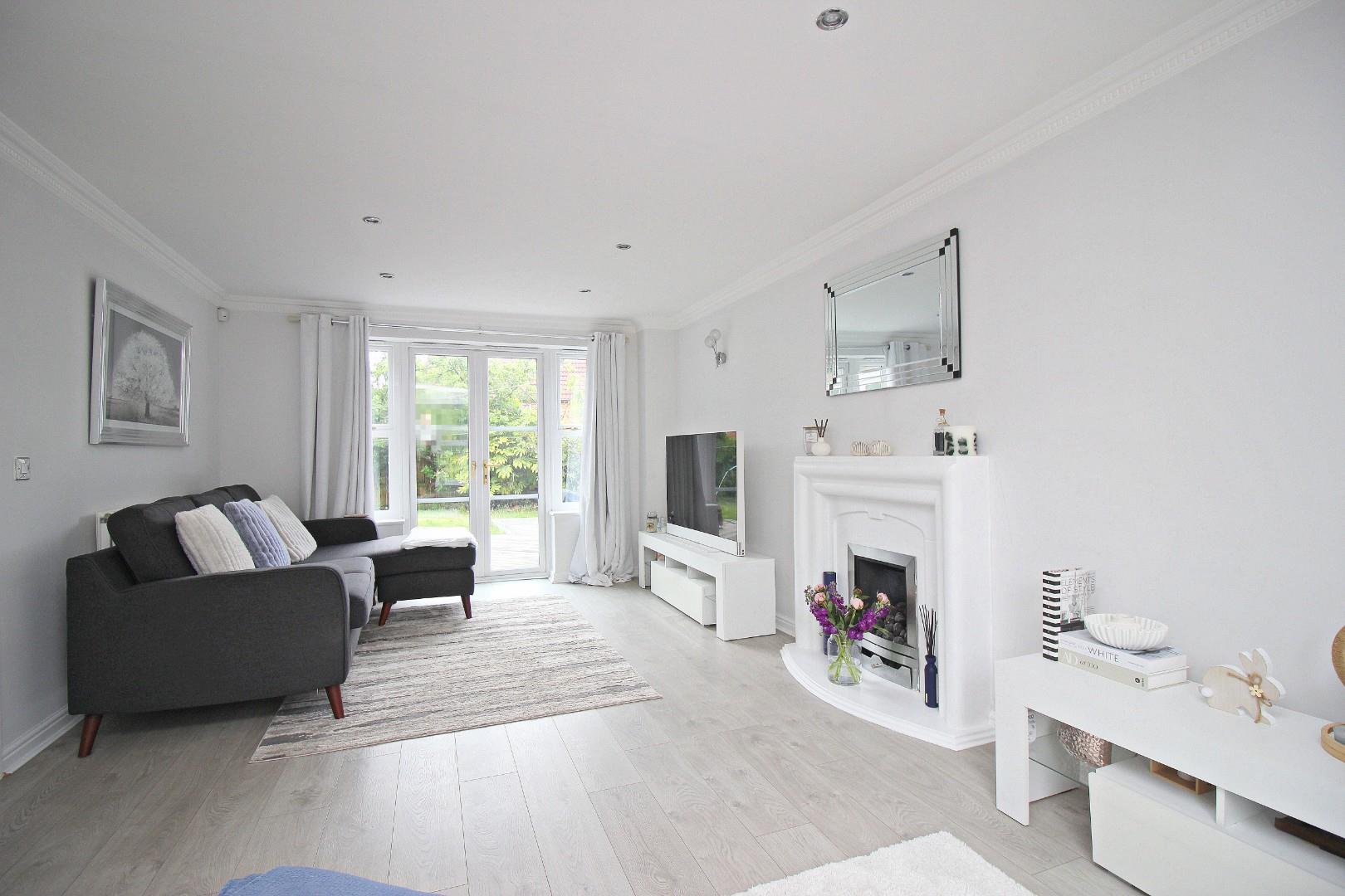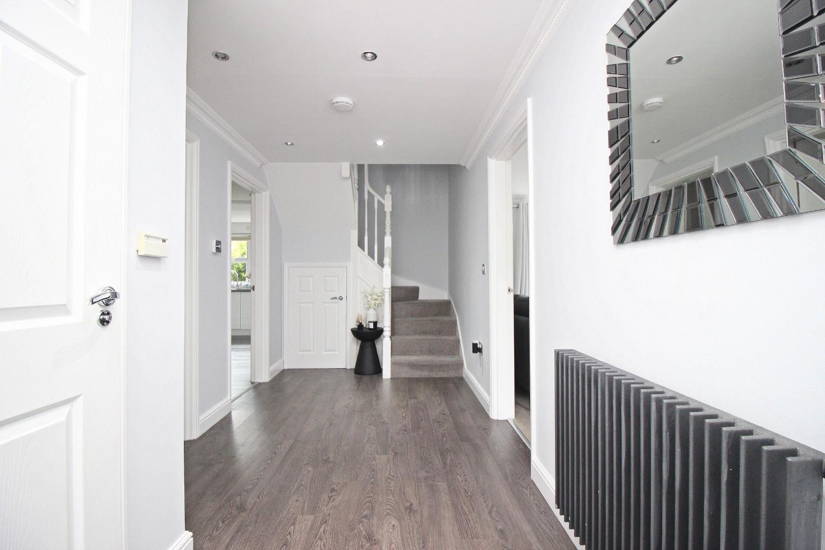 Inside, the generous layout includes multiple reception rooms and a stylish open-plan kitchen/diner with modern units, integrated appliances, and direct access to the rear patio and garden – ideal for entertaining or enjoying family meals. The spacious bedrooms are complemented by contemporary en-suites and a sleek main bathroom, all recently upgraded to a high standard. The home is immaculately presented with neutral décor, allowing buyers to personalise with ease.