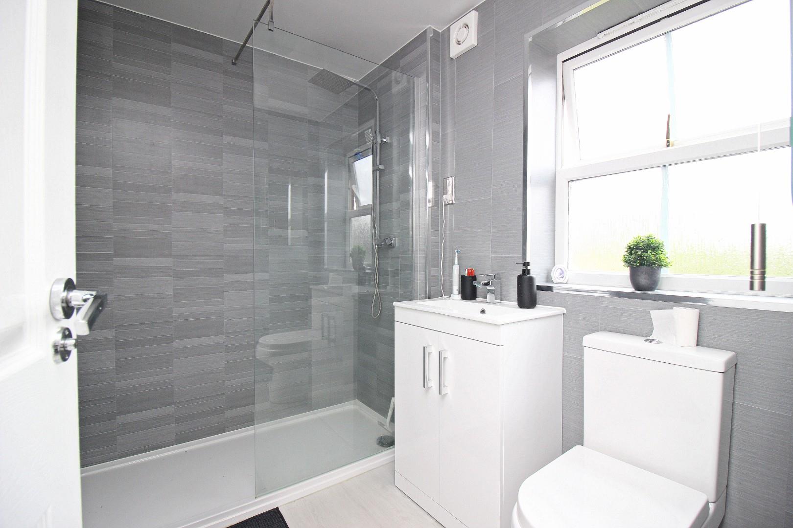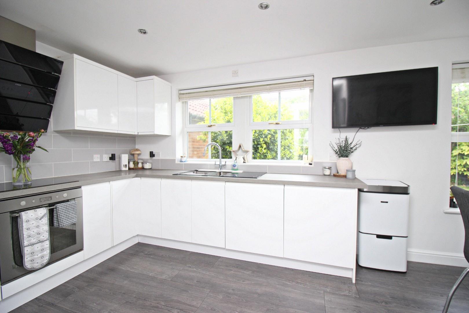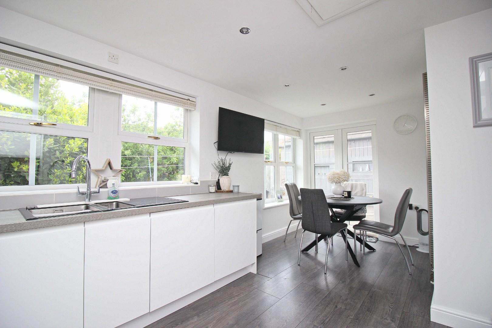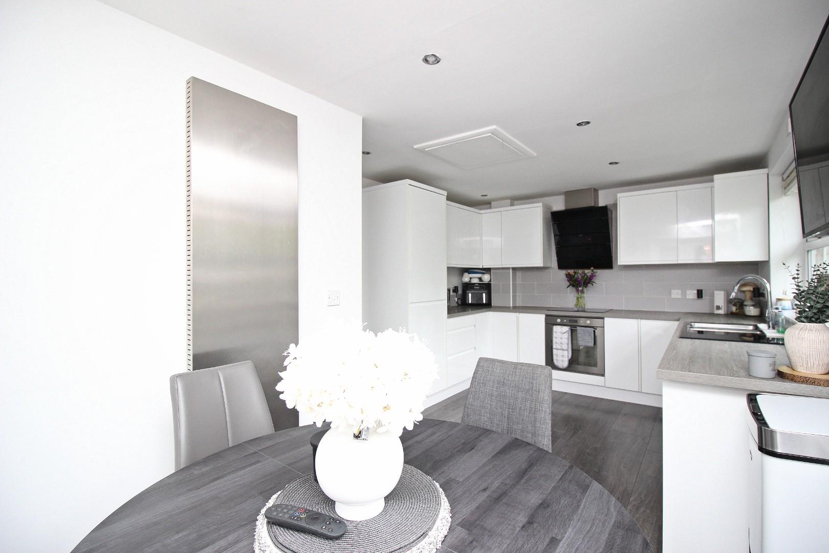 Inside, the generous layout includes multiple reception rooms and a stylish open-plan kitchen/diner with modern units, integrated appliances, and direct access to the rear patio and garden – ideal for entertaining or enjoying family meals. The spacious bedrooms are complemented by contemporary en-suites and a sleek main bathroom, all recently upgraded to a high standard. The home is immaculately presented with neutral décor, allowing buyers to personalise with ease.