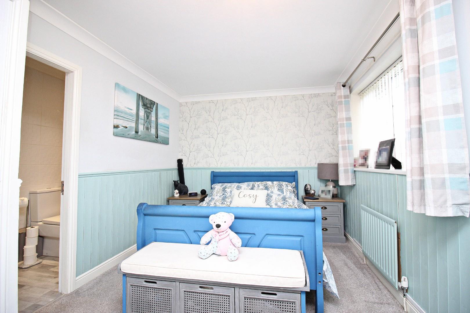 The property boasts a refurbished kitchen complete with a granite sink and large oven, flowing into a bright UPVC conservatory fitted with thermal blinds and offering views of the private, well-stocked rear garden. The lounge features a natural stone fireplace and a charming bow window, creating a warm and welcoming atmosphere. The master bedroom benefits from its own en-suite, while the family bathroom provides comfort for all with a rainfall shower, separate bath with waterfall tap, and a stylish walnut vanity unit.