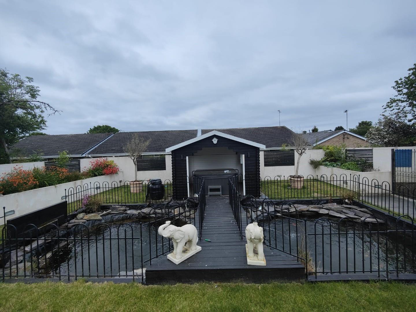 To the front of thee house there is a gravelled driveway allowing off road parking for several vehicles. The rear garden is a generous size with a garden pond, a hot tub area, dog kennels and flower borders.