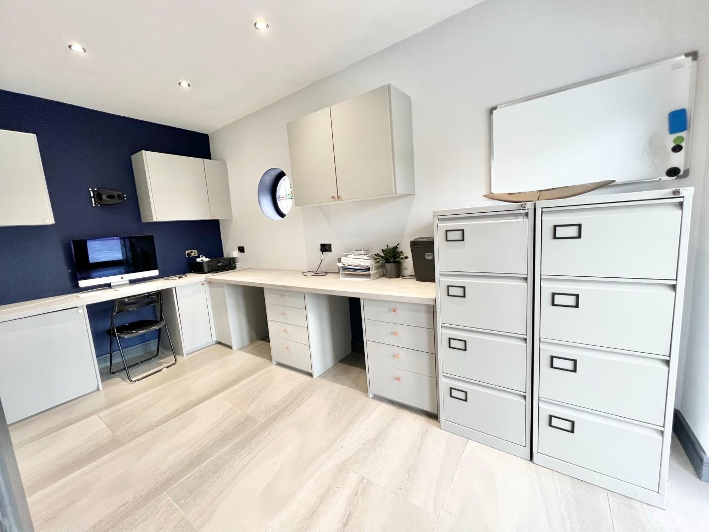 The internal accommodation comprises; entrance hallway with staircase to the first floor landing and gives access to the lounge which has a bay window to front aspect and open fire and a second reception room with bay window with window seat to the front aspect. The hallway then gives access to the open plan kitchen/family room which has bi-folding door overlooking the rear garden. The kitchen is extensively fitted with a range of wall, base and drawer units with some fitted appliances, central island, space for dining table and corner sofa. A further doorway gives access to an office which could be used for other purposes and has French doors leading to the garden. To conclude the ground floor accommodation there is a utility room and WC.
