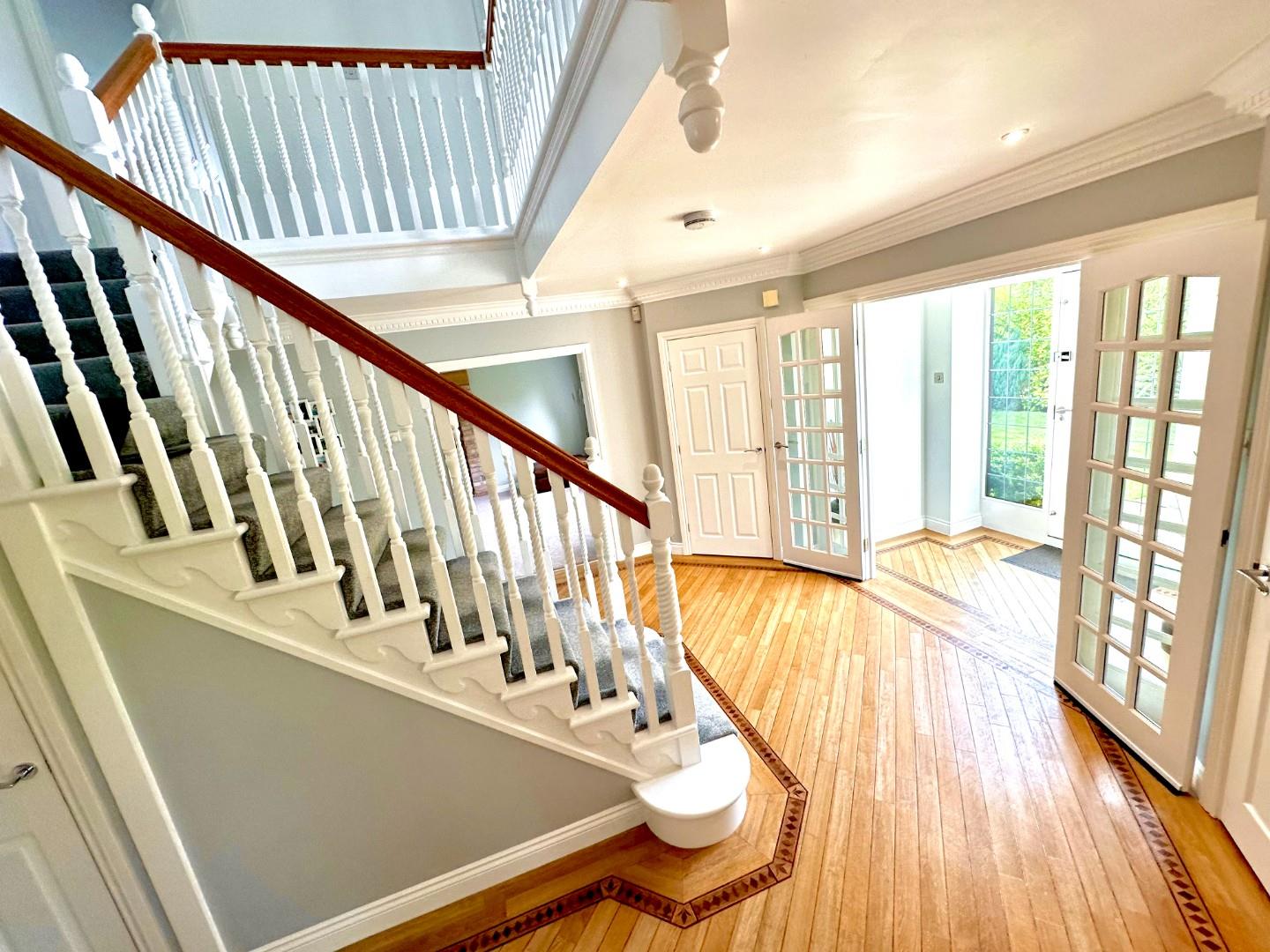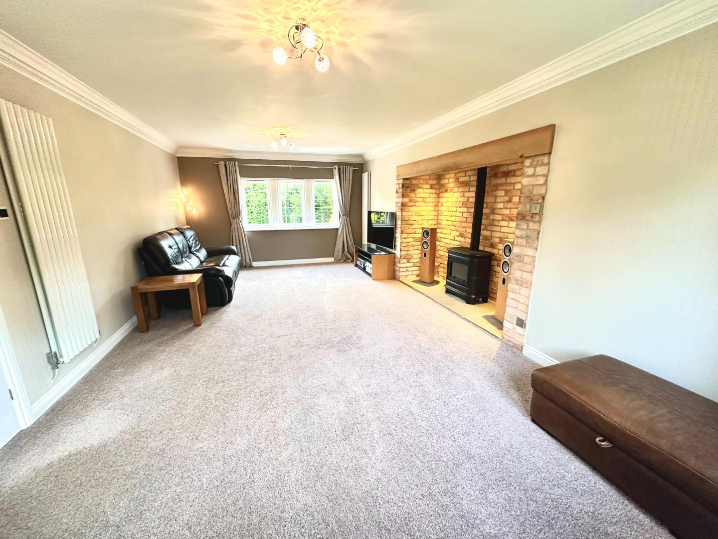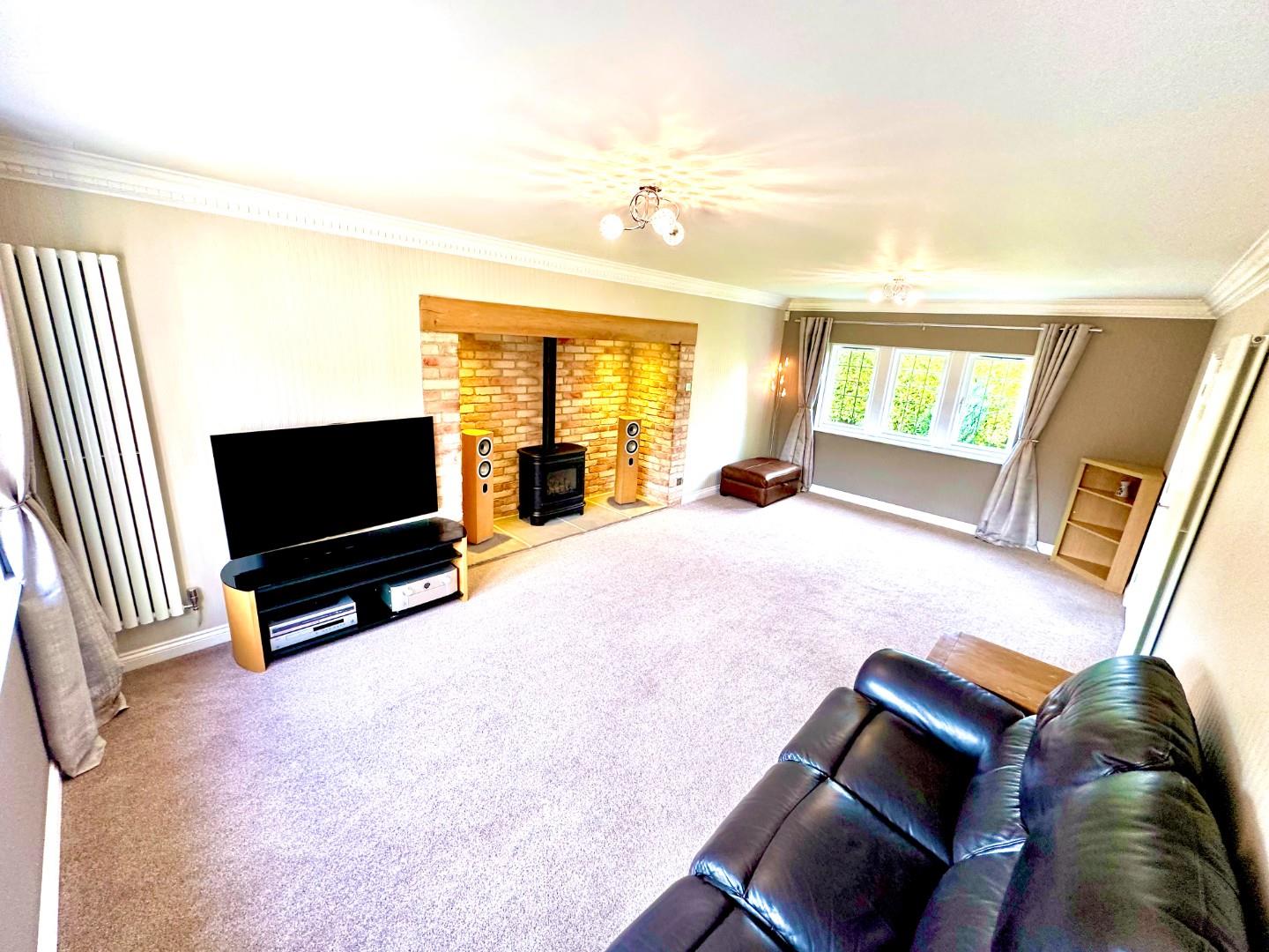 A grand central hallway sets the tone for the home’s generous proportions, leading to a striking galleried landing above. The spacious, double-aspect lounge is a standout feature, complete with a traditional inglenook fireplace adding a warm, inviting atmosphere. A further reception room offers flexibility for formal dining or relaxed family use, while a dedicated study provides an ideal space for working from home.