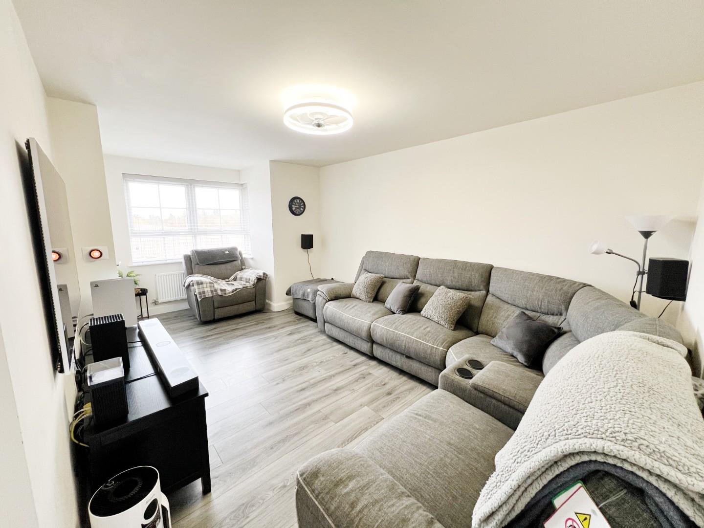 Stylish flooring, uPVC bay window, radiator, storage cupboard.