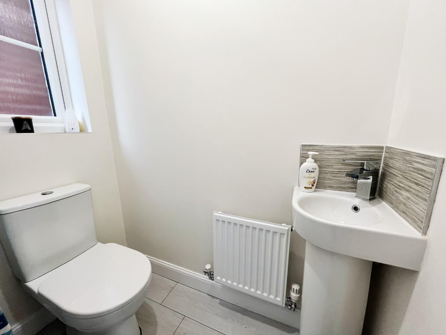 W/C, wash hand basin, radiator, uPVC window.