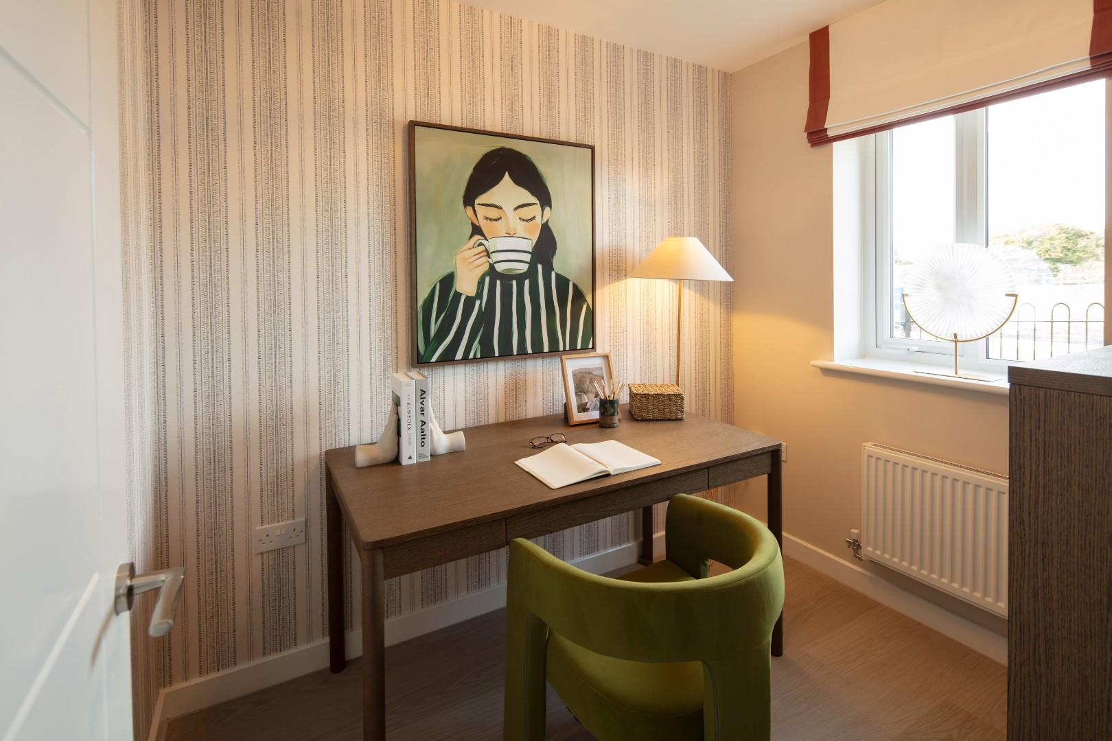 Step inside to a spacious open-plan kitchen, dining and family area – the true heart of the home – featuring bi-fold doors that open directly to the rear garden. Whether it’s family breakfasts, evening entertaining or weekend lounging, this space is designed for comfortable, everyday living. The separate lounge offers a peaceful retreat, complete with a bay window that brings in plenty of natural light. There’s also a separate study, utility room, downstairs WC and ample storage throughout the ground floor.