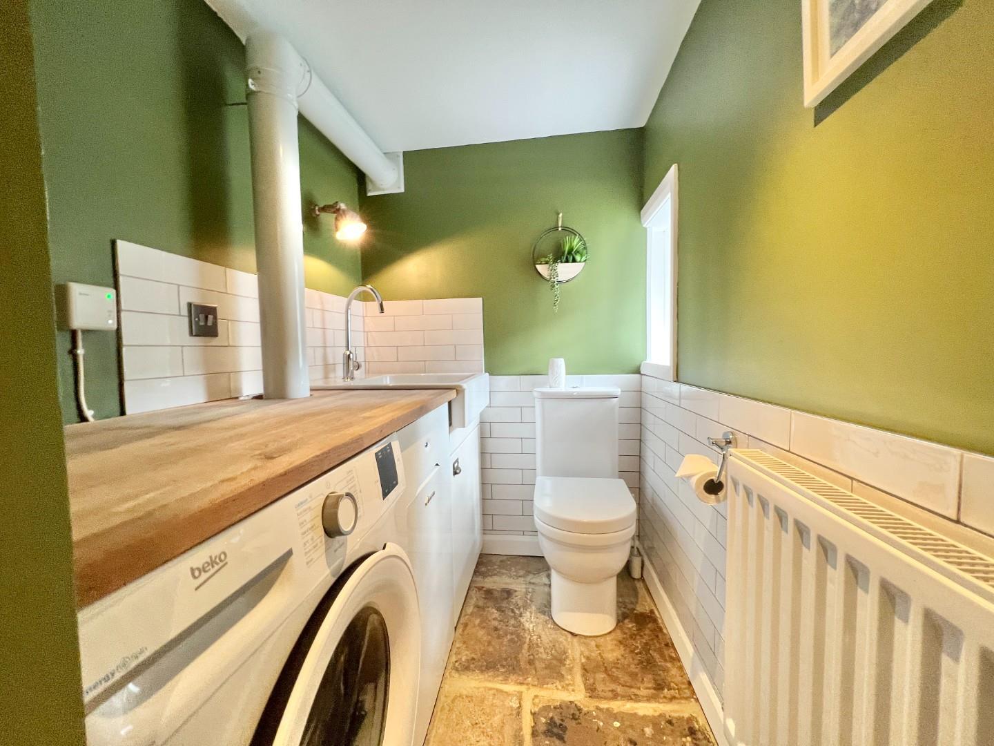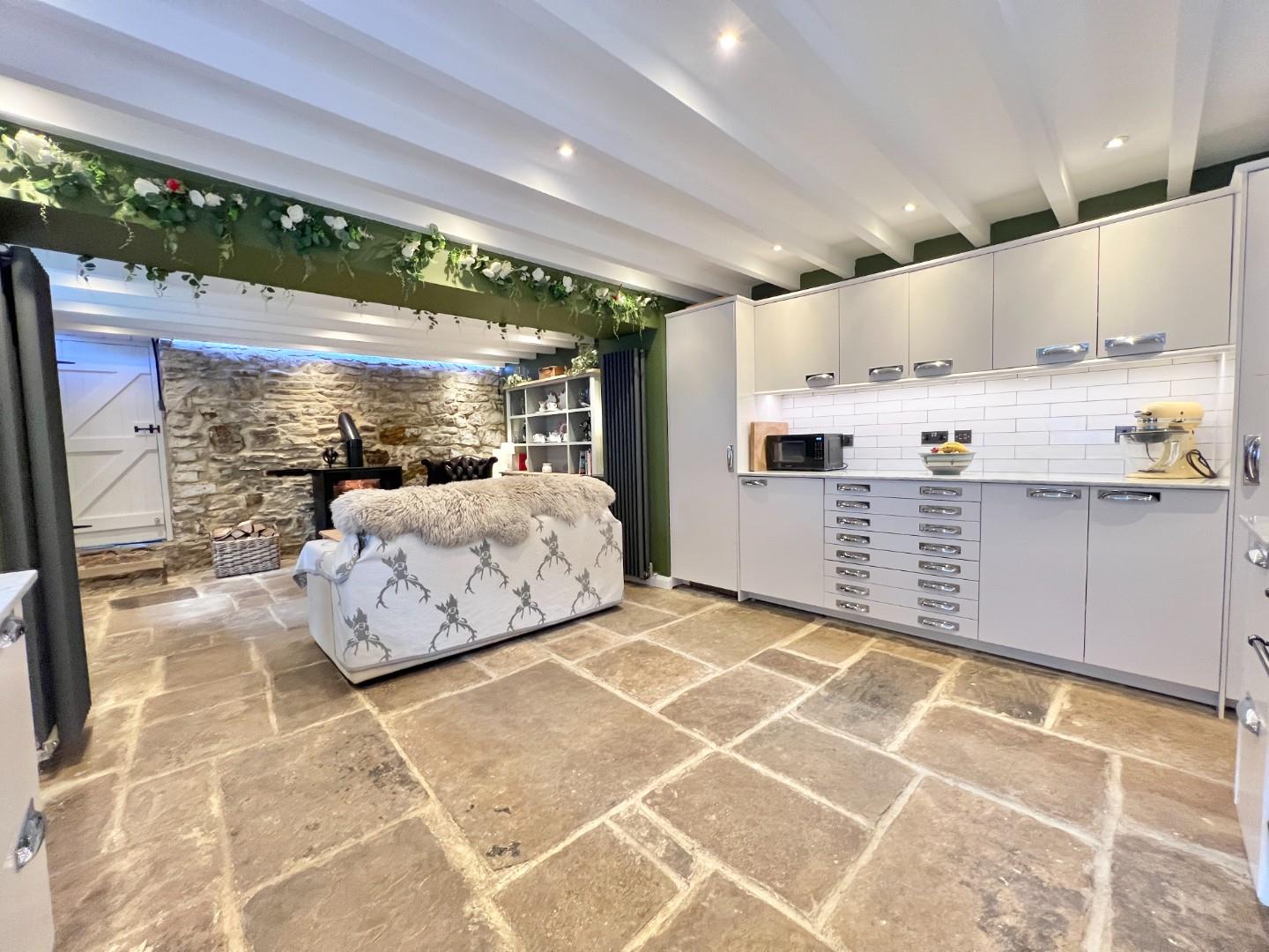 entrance porch/boot room which leads to the quality fitted kitchen with integral appliances which include, tall fridge, under counter freezer and dishwasher and leading to the snug/dining area with solid fuel Aga stove. The kitchen also gives access to the useful utility room/WC with space for washing machine and wash hand basin.