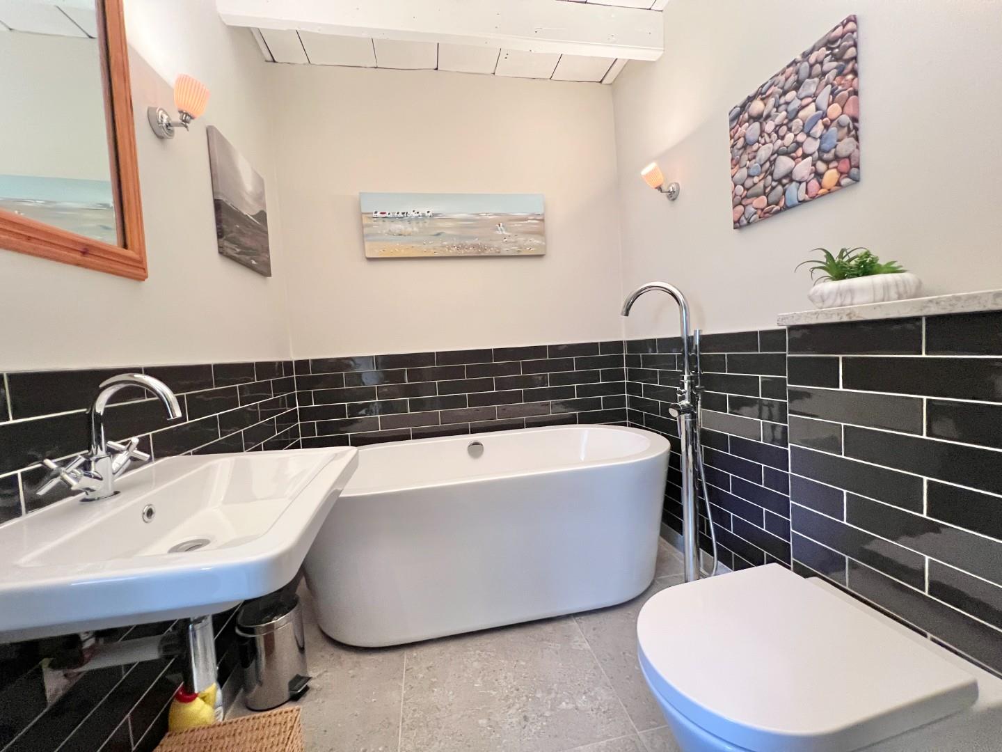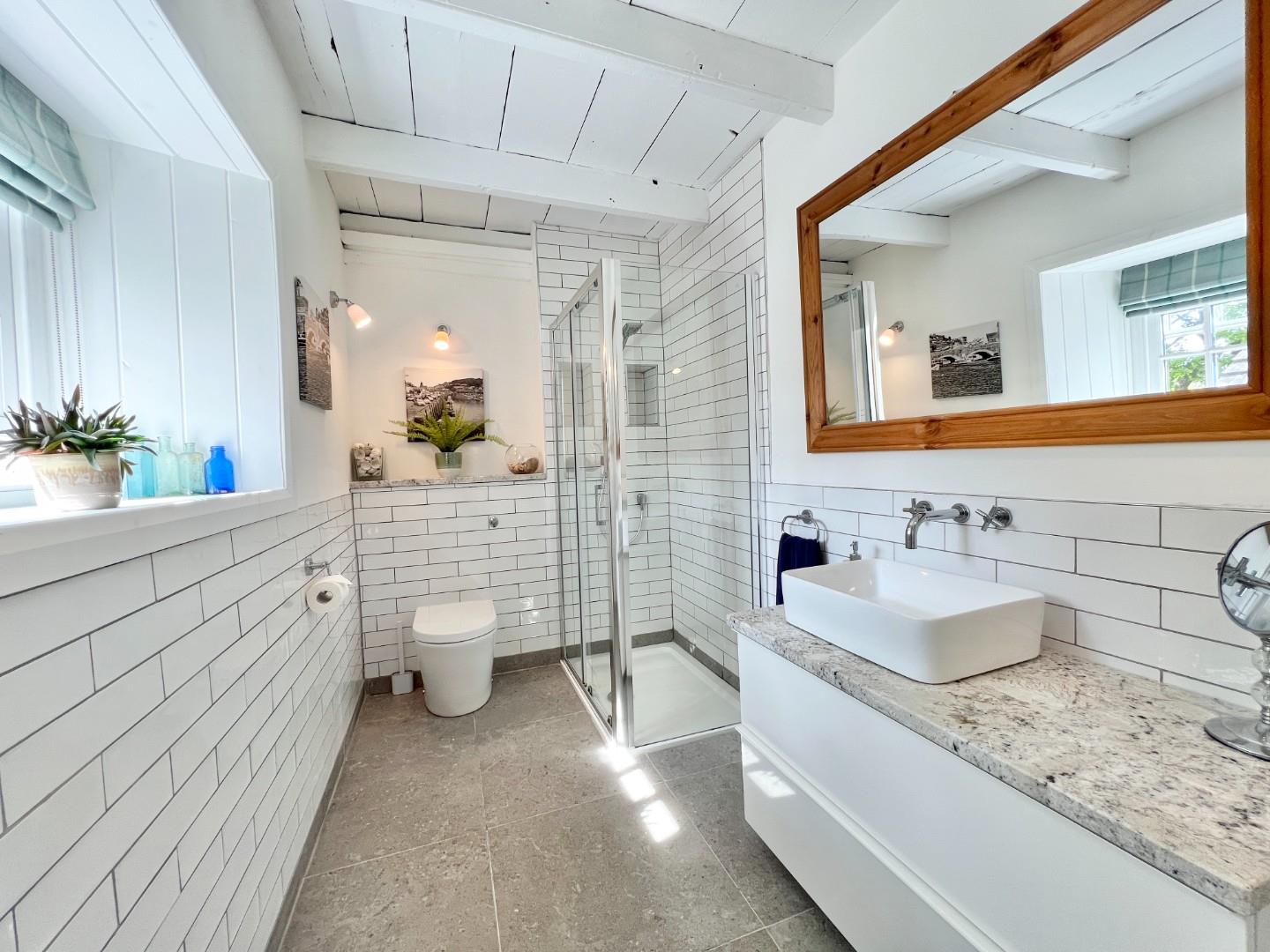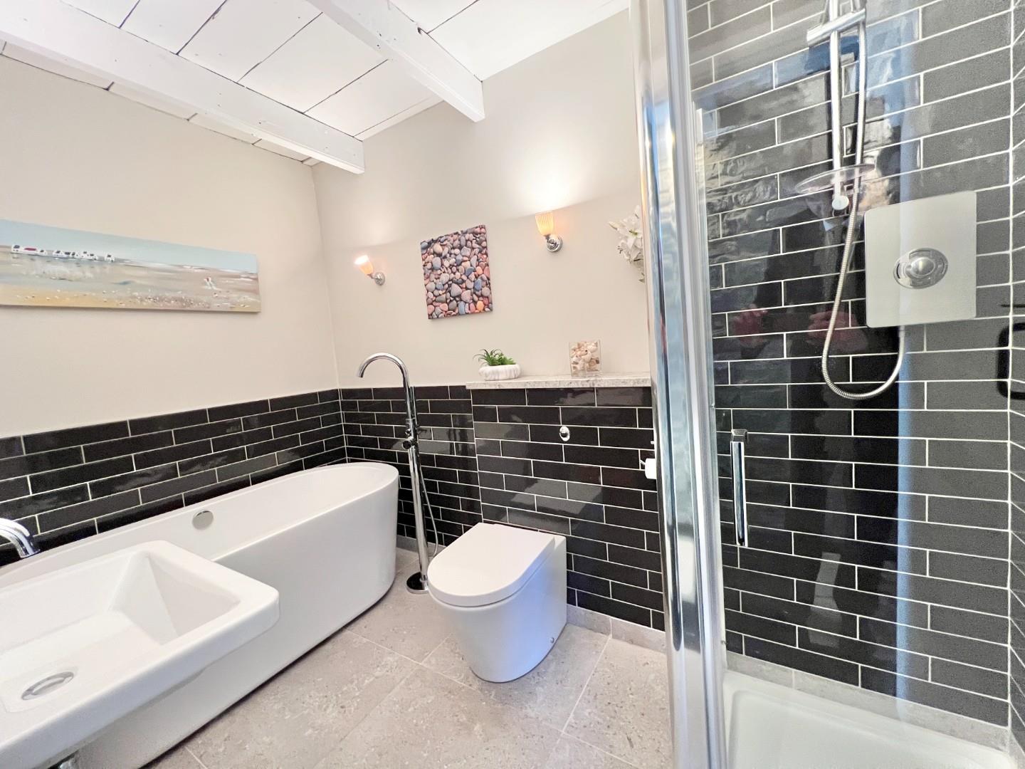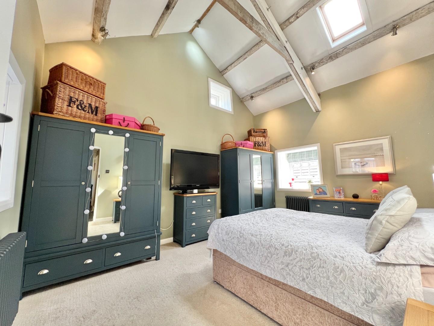 The upper floor has three well proportioned bedrooms, the main being a generous size double with a vaulted ceiling with exposed beams and has a en-suite shower room. A bathroom concludes the internal accommodation.