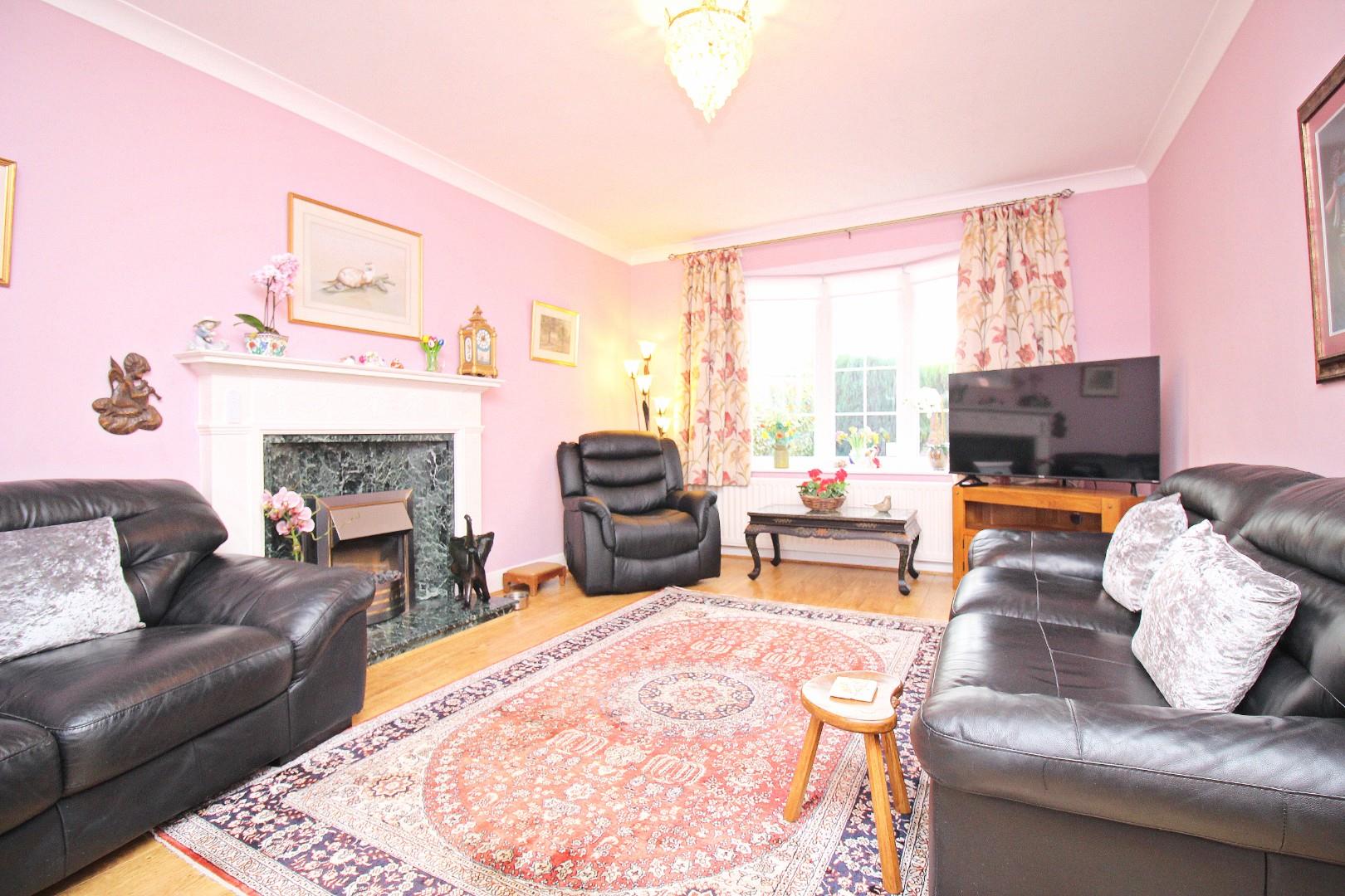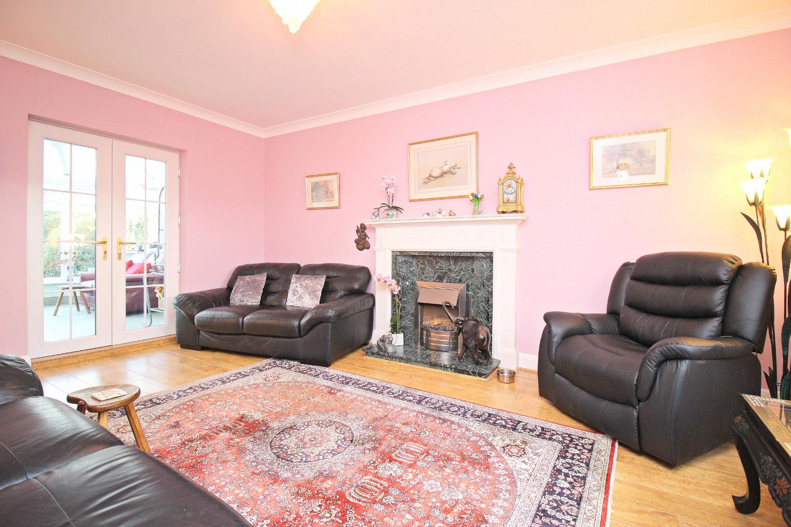 Externally, the property includes a front driveway leading to the double garage and a substantial lawned garden at the front. To the rear is a large garden offering excellent privacy and scenic views over open countryside.