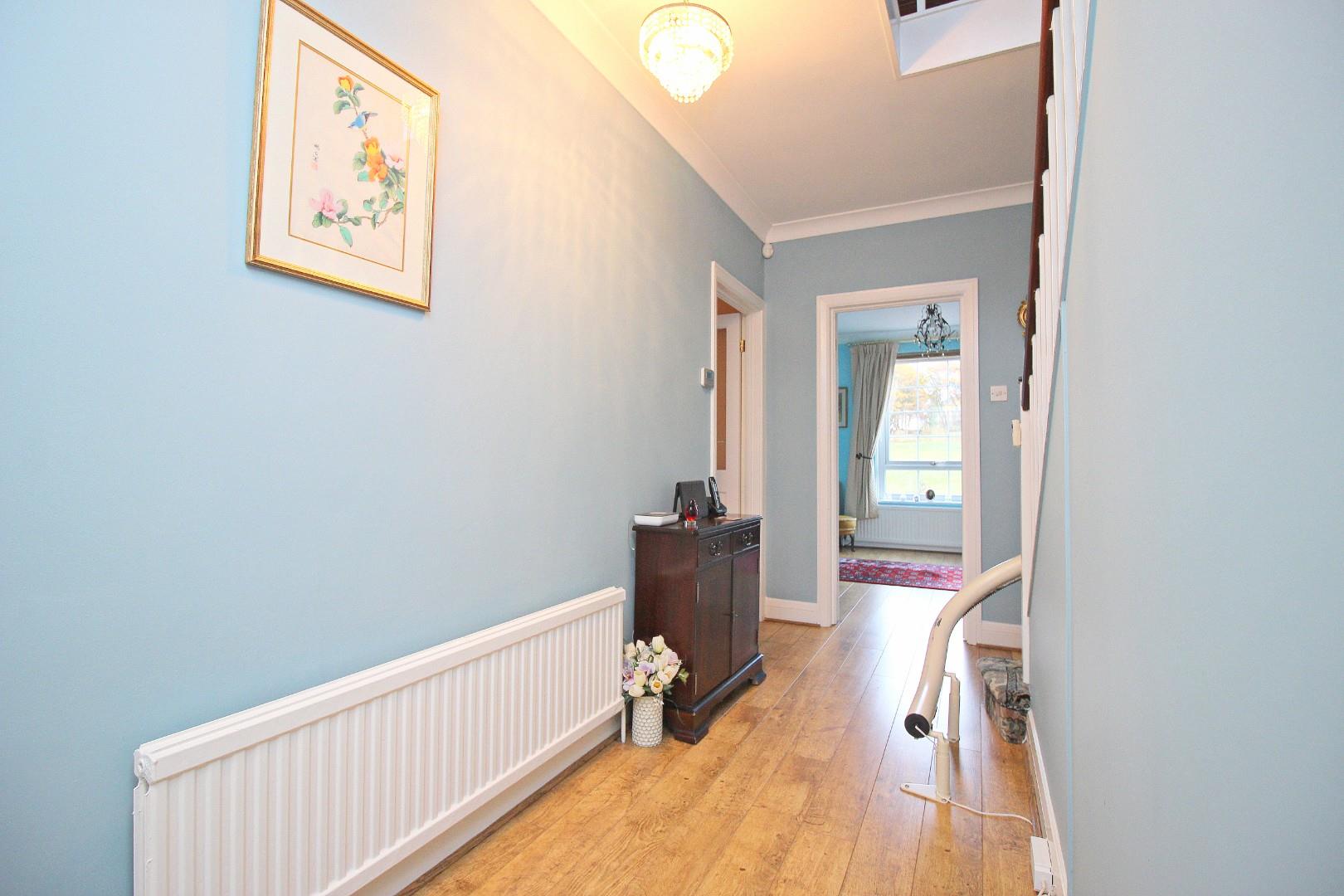 The internal layout is both spacious and welcoming, filled with natural light from numerous dual-aspect windows, and briefly comprises: entrance lobby, hallway, downstairs shower room/WC, living room, garden room with countryside views, separate dining room, generous kitchen, inner lobby, utility room, and double garage.