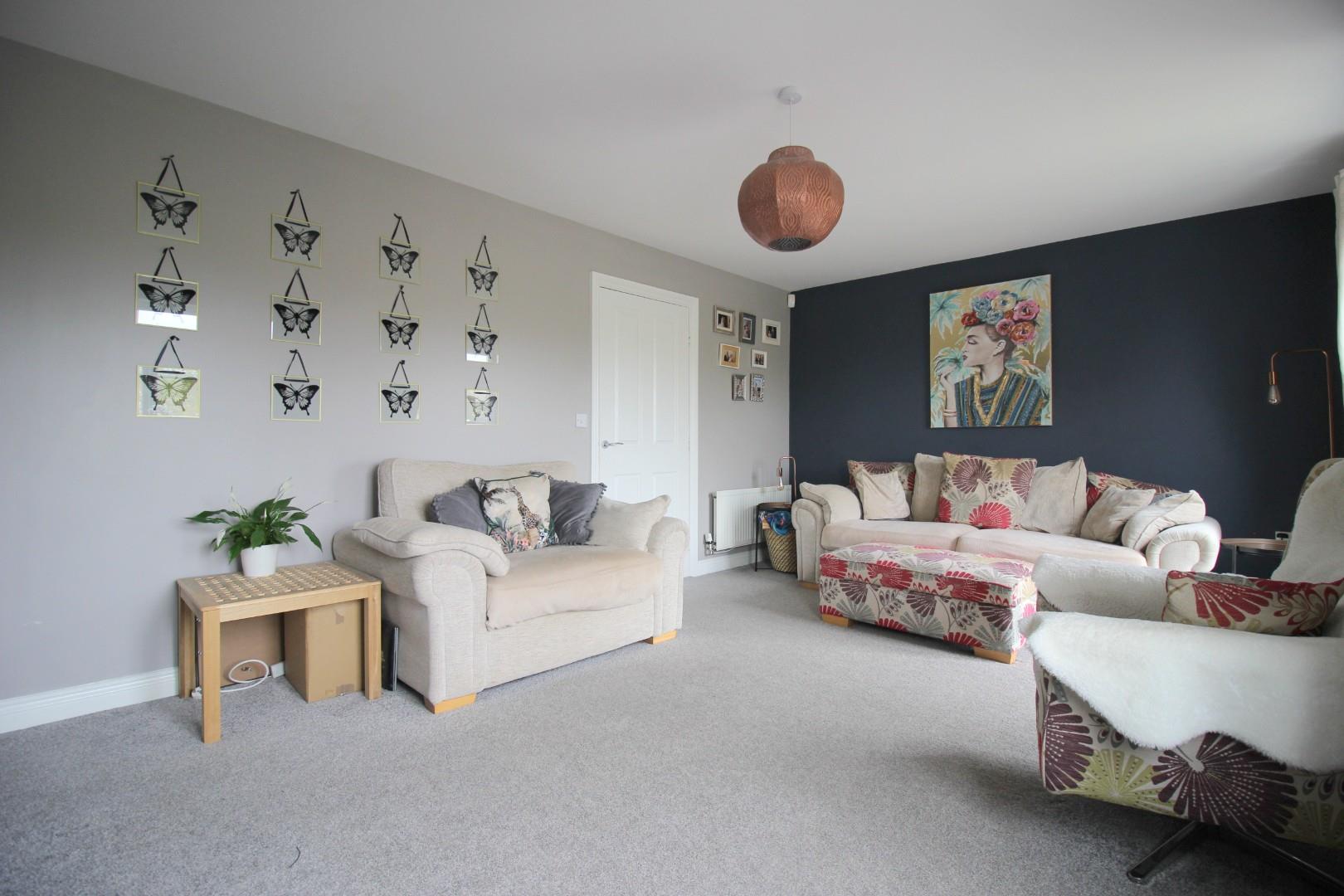 The first-floor lounge enjoys a charming open aspect to the front, overlooking verdant surroundings. The primary bedroom boasts an impressive en-suite shower room.