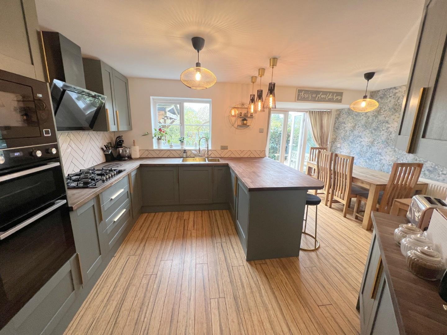 The spacious, re-fitted kitchen and family room, with French doors opening onto the enclosed garden, provide a delightful focal point. Additionally, a convenient ground floor WC is provided.