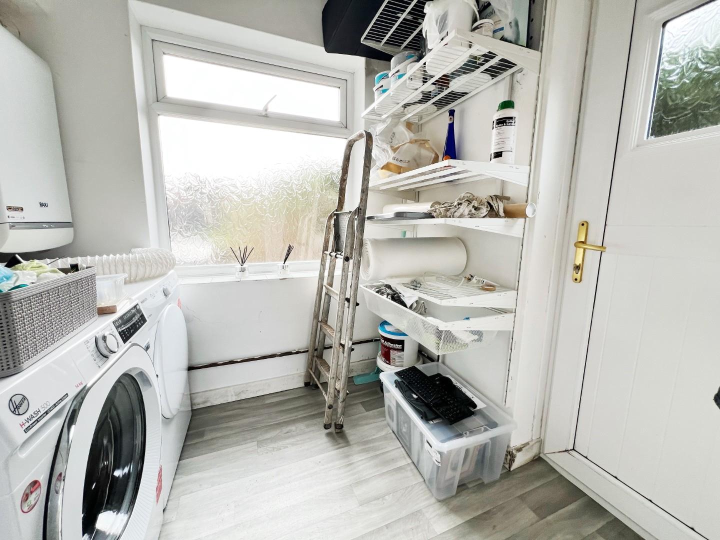 Plumbed for washing machine space for dryer, uPVC window, access to side of property.