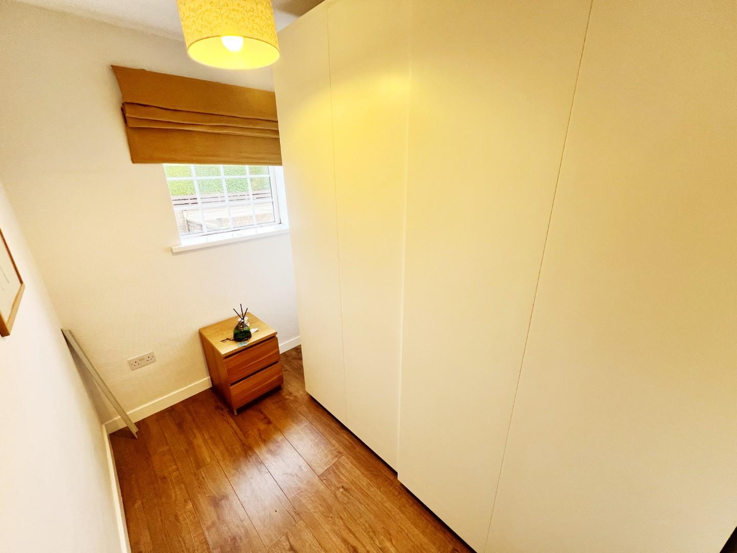 Radiator, wood effect flooring, storage cupboard, loft access.