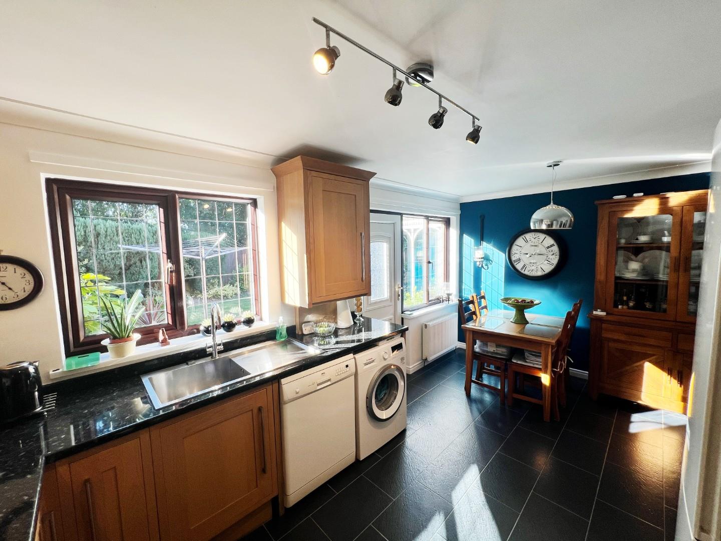 Well presented wall and base units, integrated oven, hob, extractor fan, plumbed for washing machine, plumbed for dishwasher, space for fridge freezer, space for dining room table, stainless steel sink with mixer tap and drainer, uPVC window, radiator, access to the rear, airing cupboard.