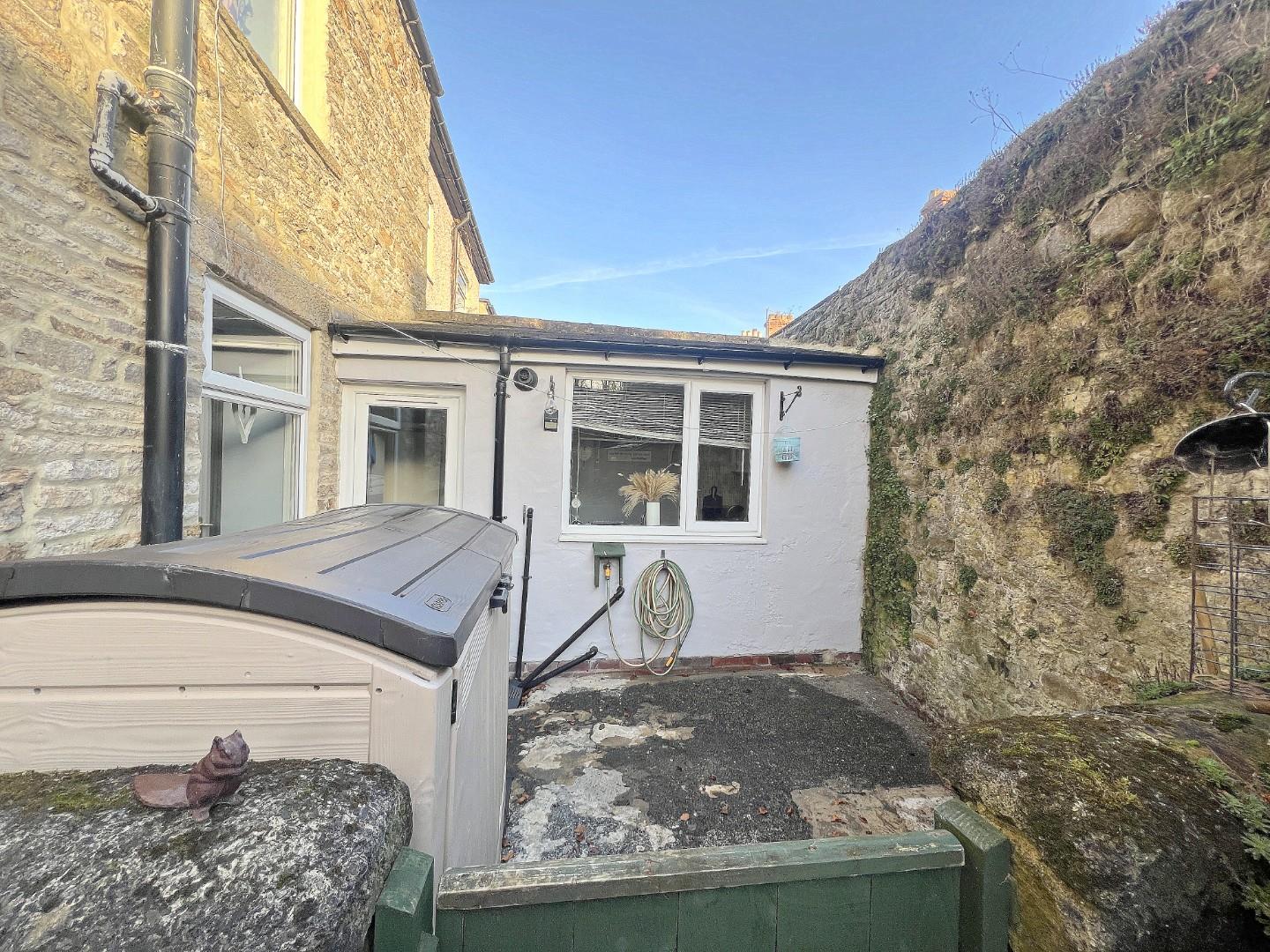 The living room welcomes you with high ceilings and a cosy multi-fuel stove set on a slate hearth, adding warmth and charm. The dining room, situated to the rear, overlooks the courtyard and benefits from under-stairs storage. The kitchen features white base and wall units, contrasting worktops, and an integral electric oven with hob. There is also space for a washing machine, and an outdoor water tap is located in the courtyard, which is accessible from the kitchen.