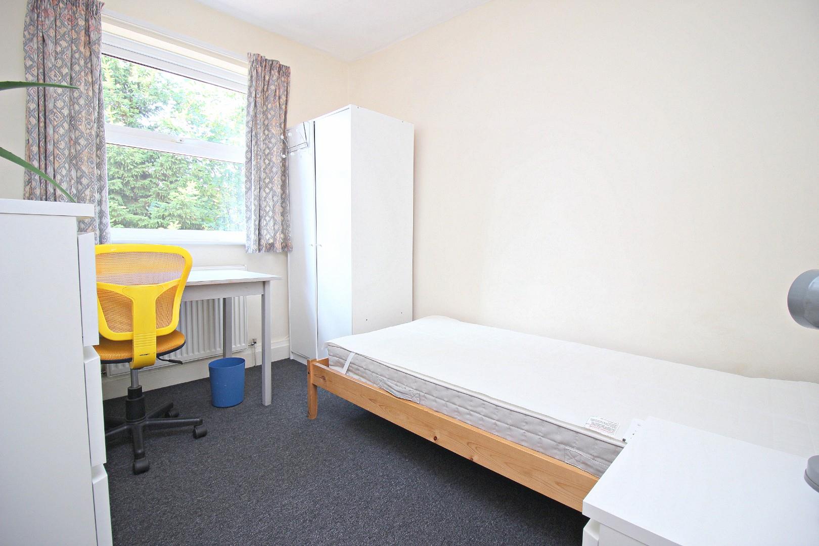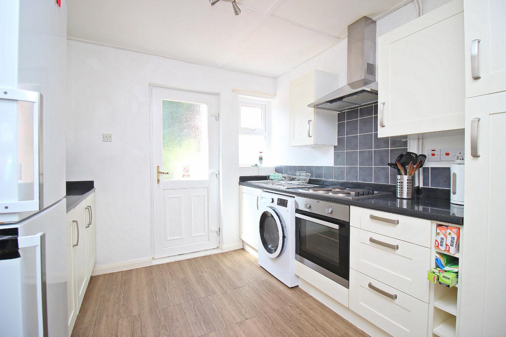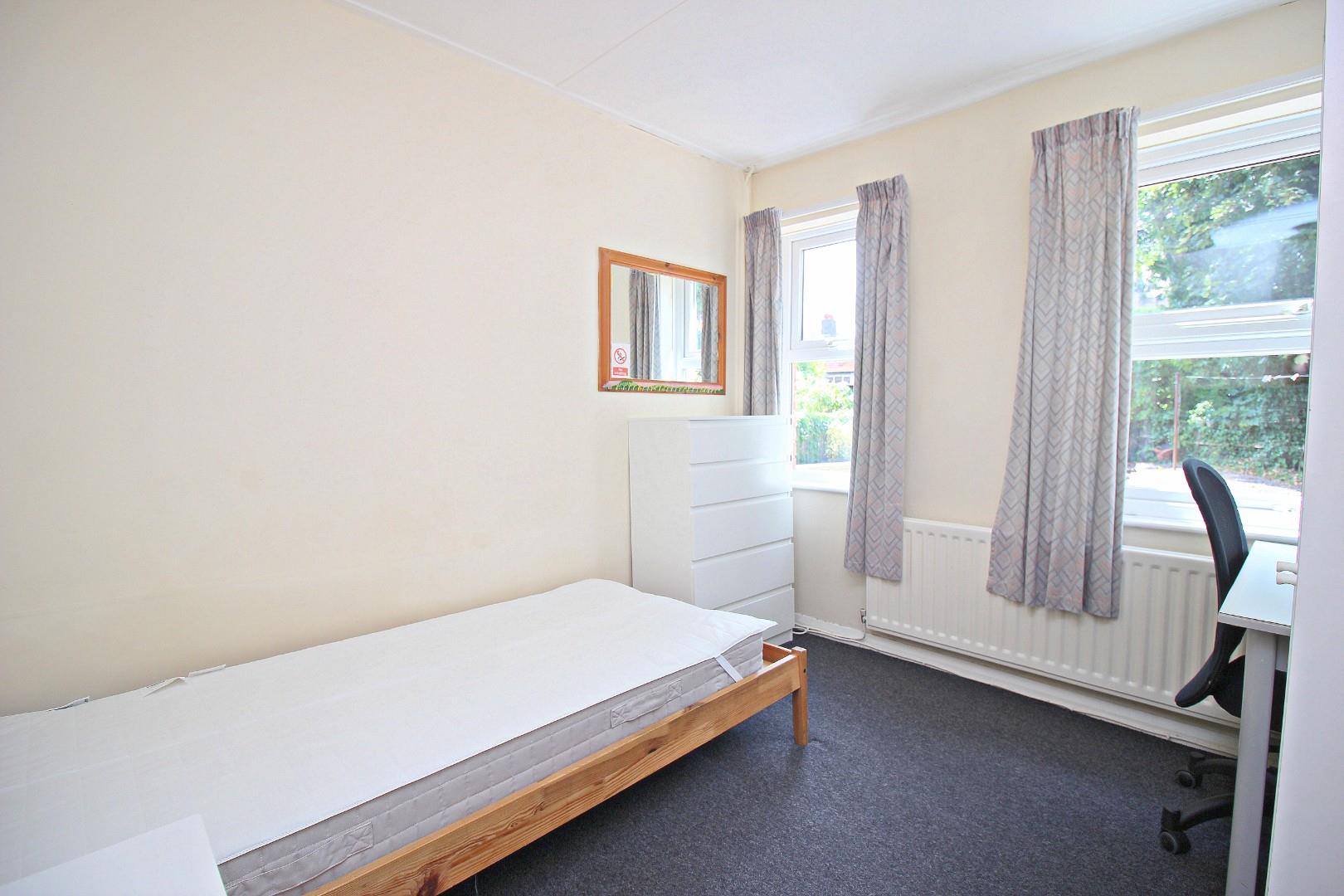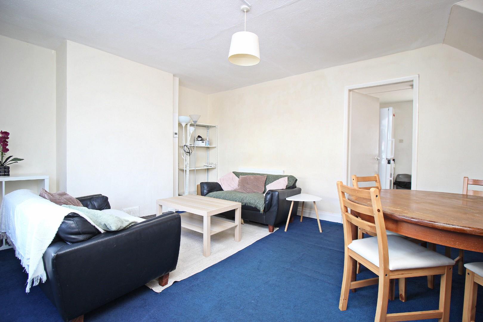 The internal layout comprises an entrance hall, spacious living room, fitted kitchen, and a ground floor bedroom. To the first floor there are three further bedrooms and a bathroom with a white suite. The layout is ideal for students, offering four good-sized study bedrooms, comfortable communal space, and a practical kitchen and bathroom setup. It also has a large rear garden and small front garden.