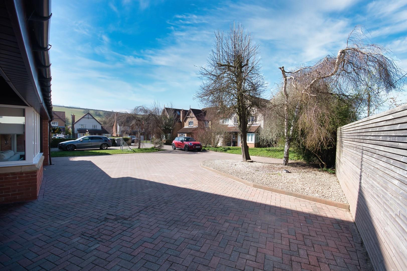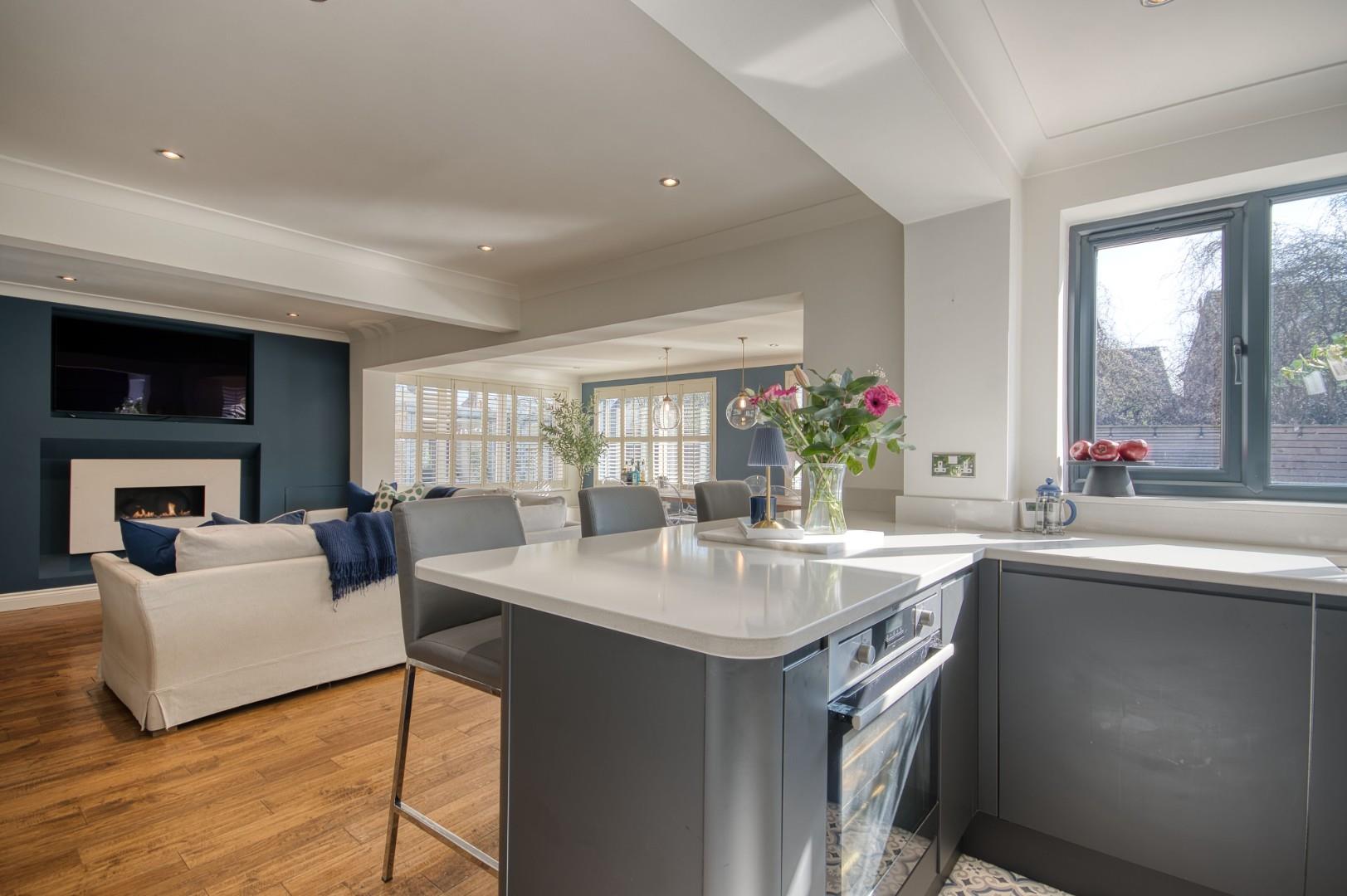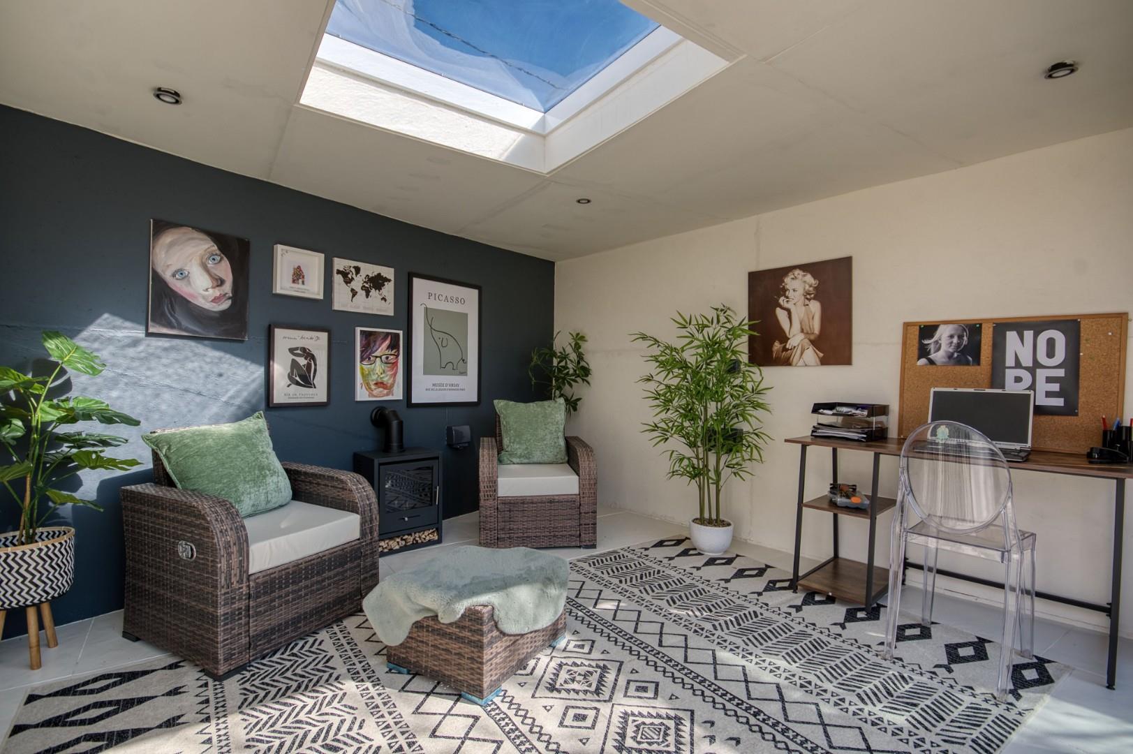 Upstairs, offers three double bedrooms, a luxurious principal suite with walk-in wardrobe/dressing area and en-suite. Additionally, there is a fabulous family bathroom with over-bath shower. Outside, the property boasts ample parking, landscaped gardens, a versatile summer house or home office, which has a lovely bioethanol fire. The garage, part converted creating a studio and storage area, but could easily be turned back with ease.