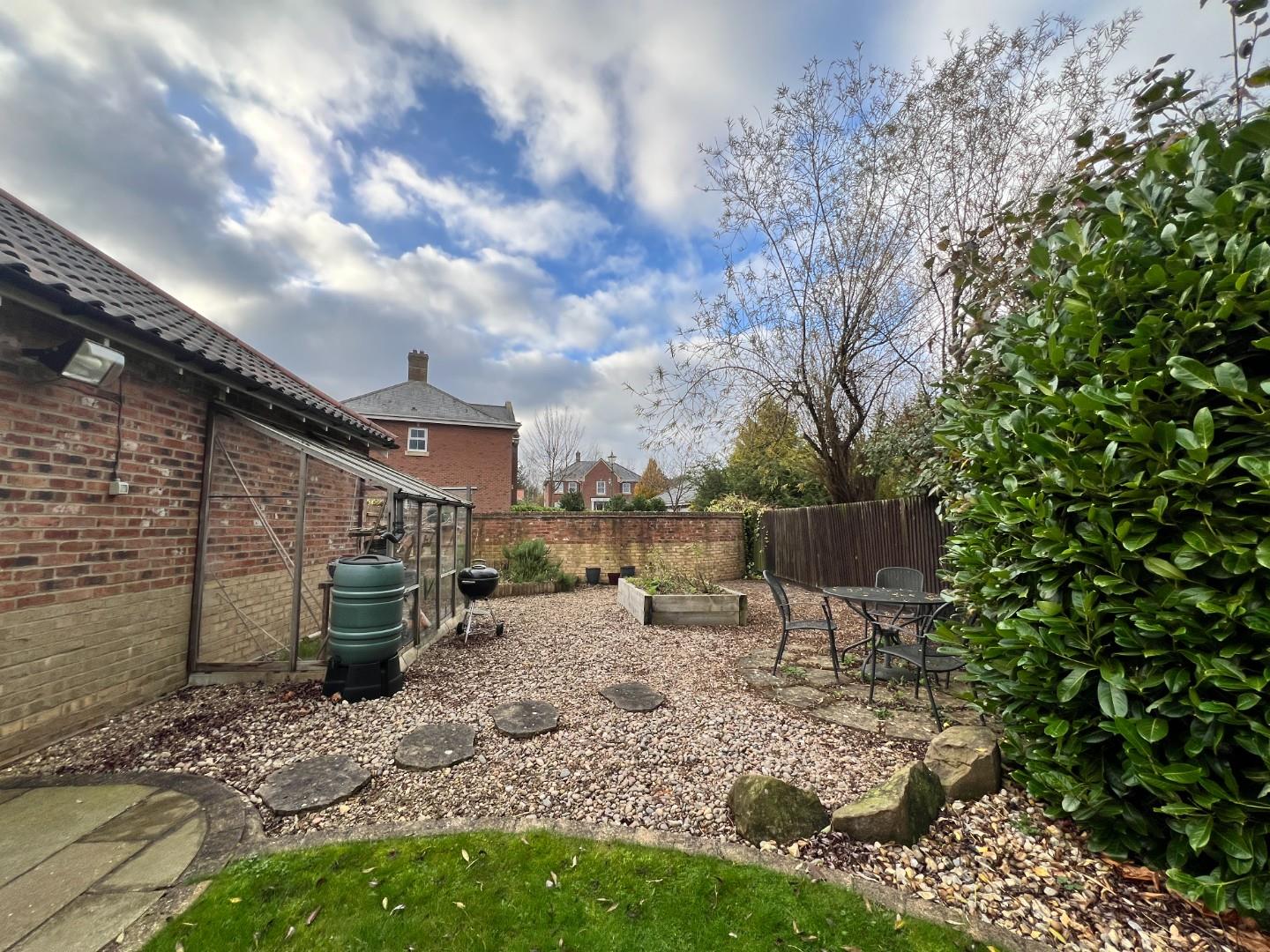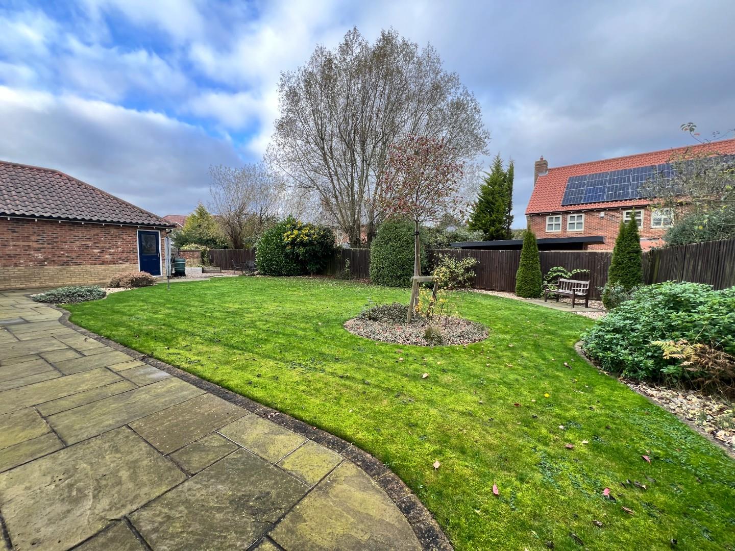 Outside, the property boasts extensive gardens to the front, side, and rear, predominantly laid to lawn with established hedging and shrubbery providing privacy and easy maintenance. A large block-paved driveway offers ample parking and leads to a detached double garage.