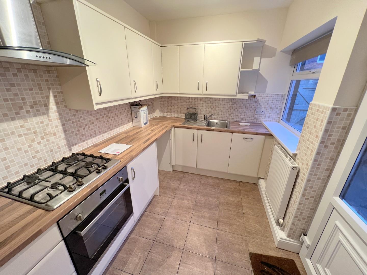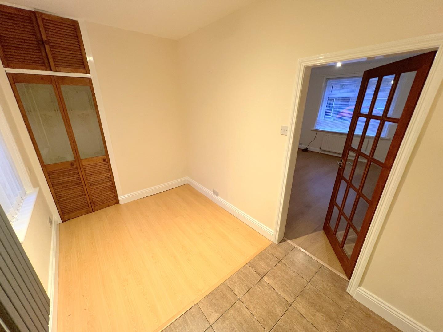This centrally located two-bedroom mid-terraced home offers a comfortable and well-presented living space, ideal for professionals or small families. The property is unfurnished and features an entrance hall with a laminate floor, leading to a spacious lounge with an electric fire and under-stairs storage. Adjacent is a separate dining area, providing a perfect space for entertaining. The modern kitchen includes wall and base units, generous worktops, a gas hob, electric oven, extractor, and plumbing for a washing machine.