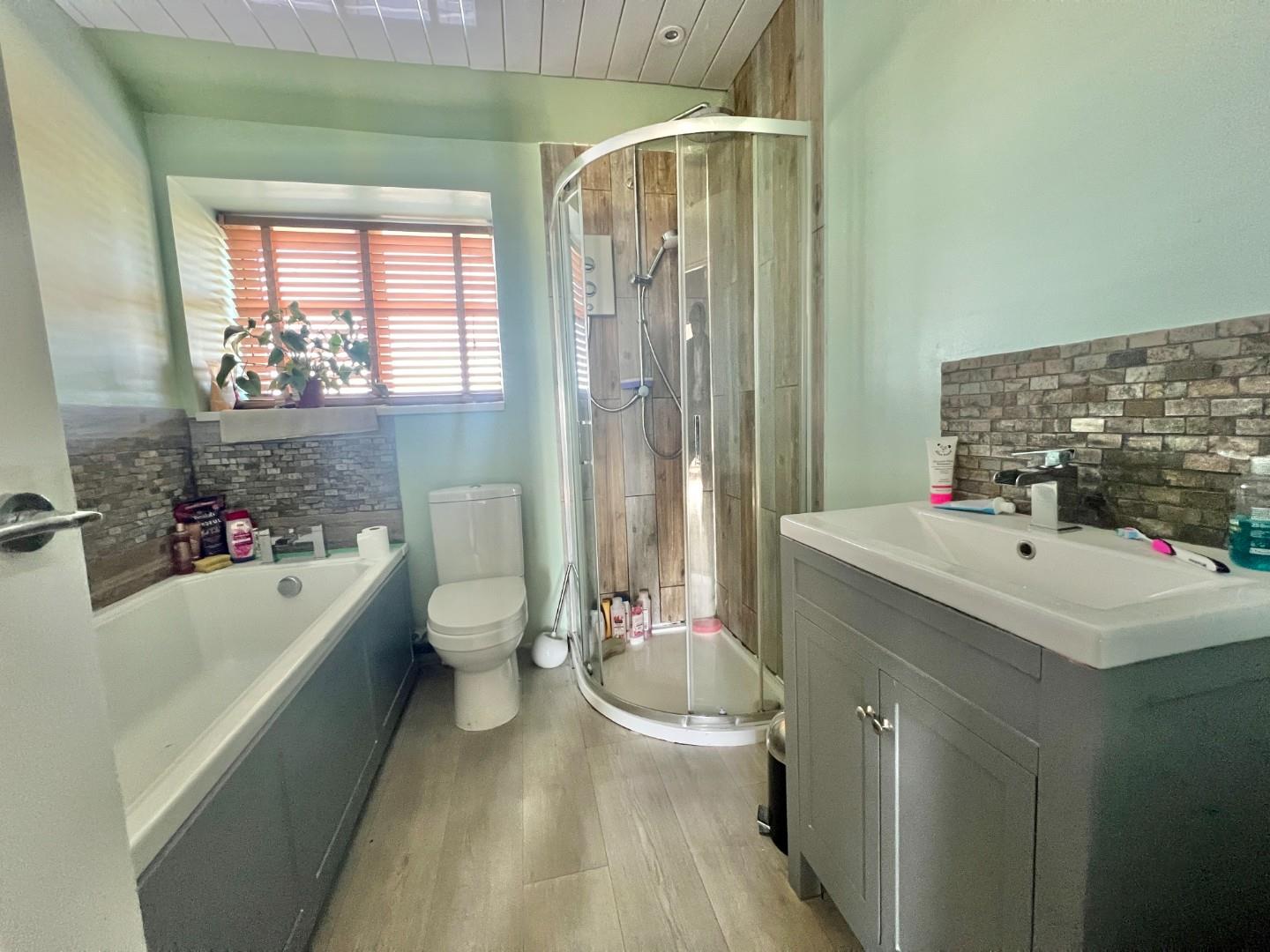 To the first floor there are two bedrooms and a bathroom, with four piece suite, including bath and separate shower cubicle.