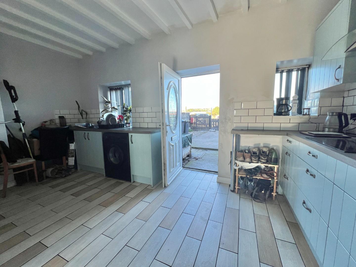 The internal accommodation comprises; lounge with solid fuel stove and staircase leading to the first floor landing. Kitchen/dining room which is fitted with a range of wall, base and drawer units with space for appliances and dining table.