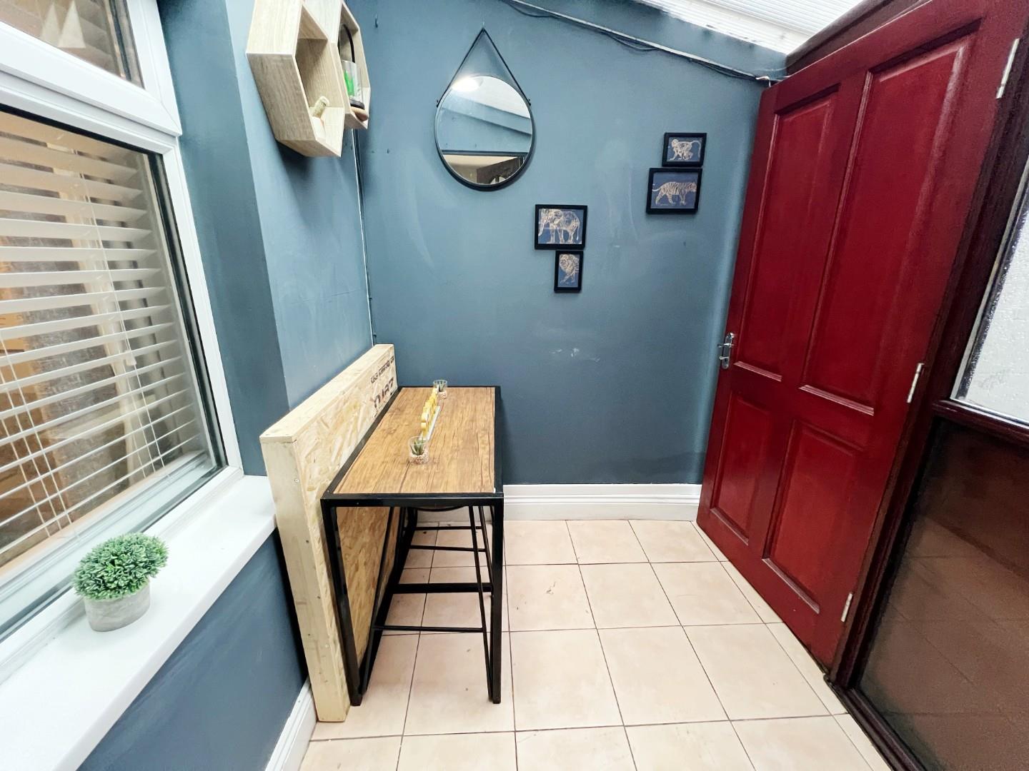 Stylish flooring, radiator, uPVC window, storage cupboard.