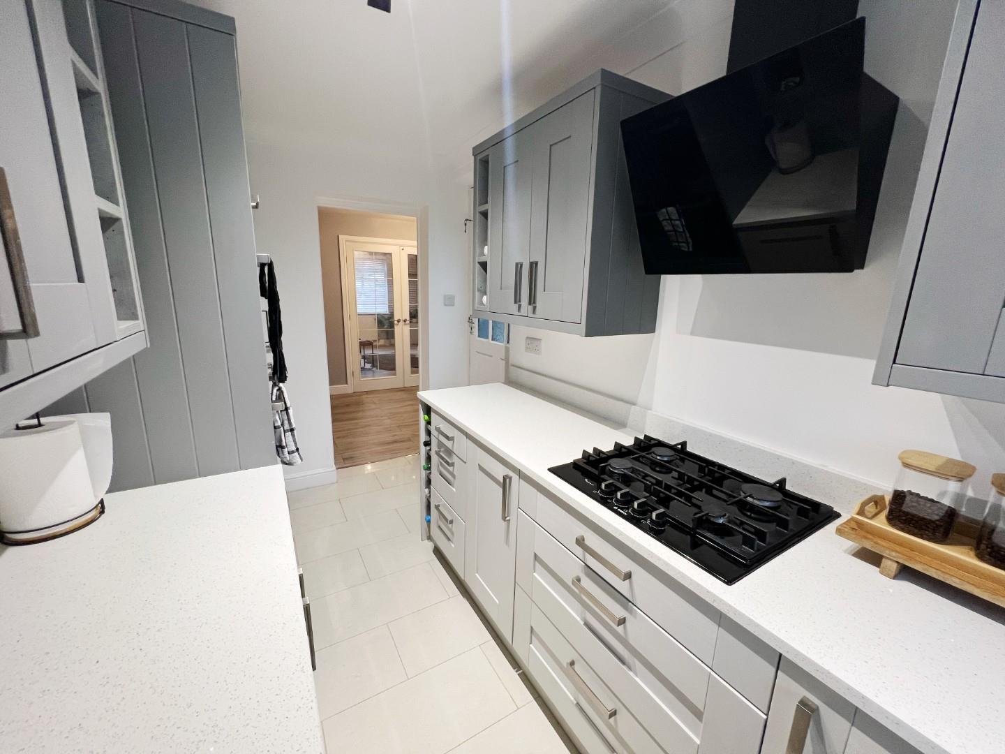 Stylish & modern wall and base units, integrated microwave, oven, hob, extractor fan, washer, fridge and freezer, stylish sink with mixer tap, smart worktops and matching splash backs, uPVC window, extractor fan, tiled flooring.