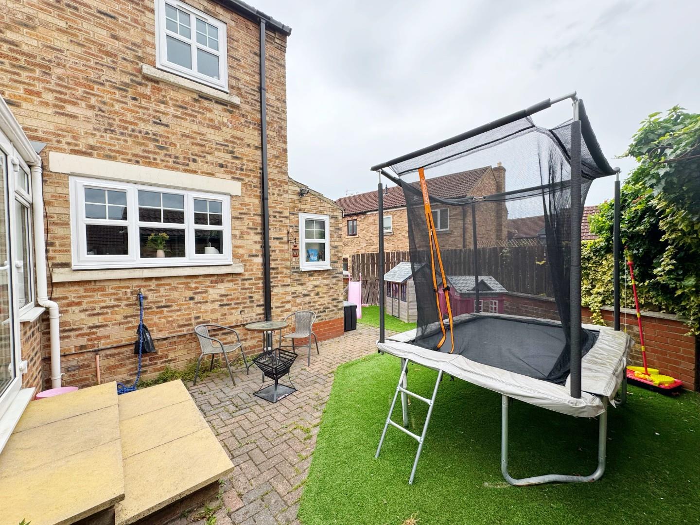 Nestled beautifully within a cul-de-sac location of only 16 properties; we are delighted to offer to the market this exceptionally well presented detached house with three bedrooms on Hall Farm Court, pleasantly situated within the highly sought after, family orientated location of Trimdon Village. This deceptively spacious residence has been a loving home for several years, has the added benefit of 2024 re-fitted double glazing & is the perfect purchase for the growing family. Having easy access to all of the immediate amenities offered in & around Trimdon itself, the property is a short drive into the neighbouring village of Sedgefield, is within excellent commuting distance to all major road links leading to Durham City, Darlington & Teesside & benefits further from gas central heating via a combi boiler & double glazing throughout. In brief, this well proportioned home comprises: Welcoming entrance lobby with access to a useful ground floor cloaks/wc, a spectacular lounge (measuring 21ft approximately) with bay window to front elevation & stairs to the first floor, separate dining room leading through to a conservatory which overlooks the rear garden, kitchen with a range of fitted wall & base units & access to a side porch. The first floor landing boasts three bedrooms; the master bedroom having en-suite facilities & a family bathroom with modern three piece suite. Externally, the property enjoys an enclosed, South-West facing rear garden whilst a detached garage is positioned beyond the fence, with a spacious driveway providing additional vehicle parking & EV charging point. The front garden is open aspect. We thoroughly recommend full internal inspection in order to fully appreciate the style, standard, layout & space of this beautiful home for sale.