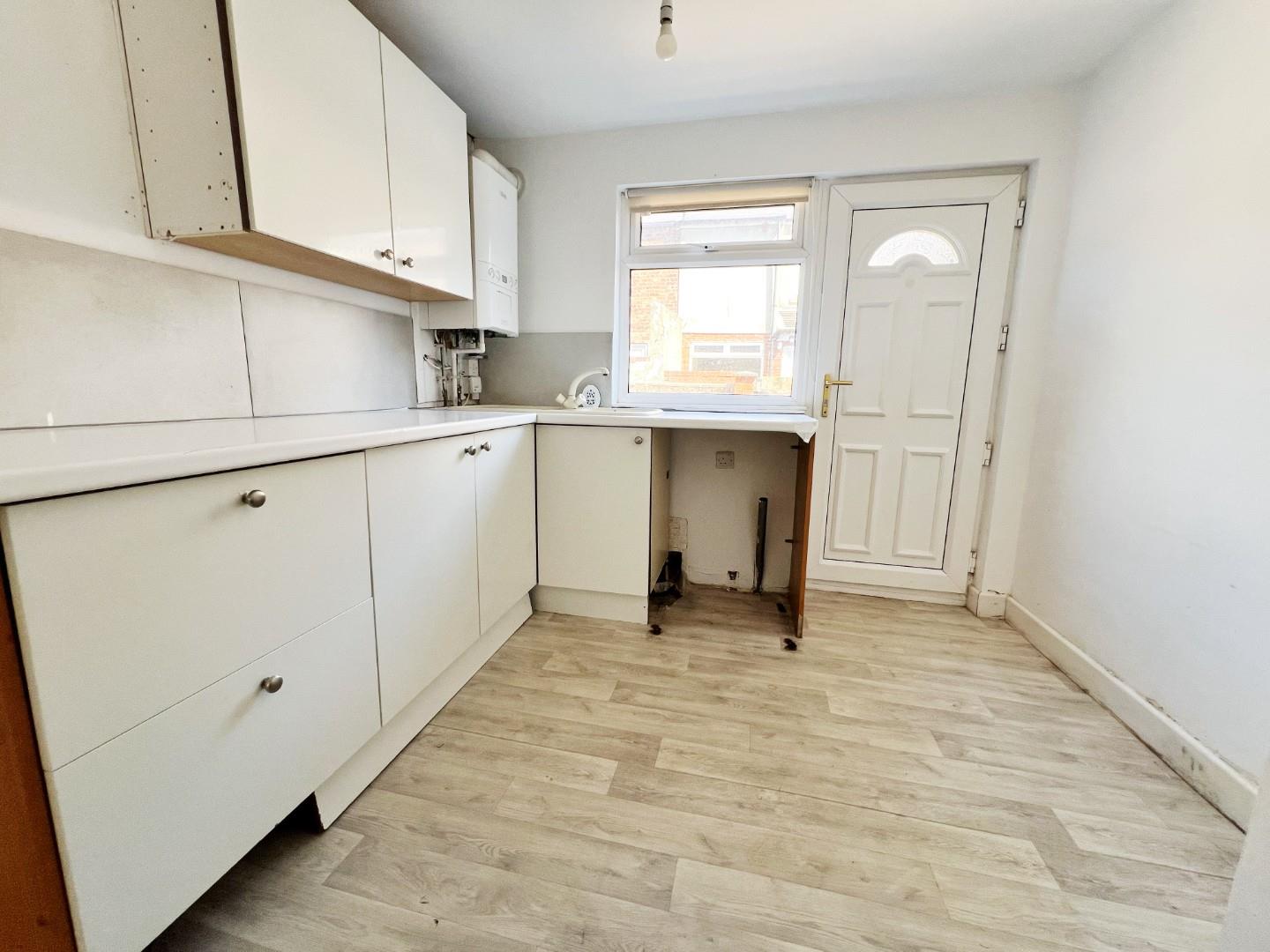 Wall and base units, sink with mixer tap and drainer, plumbed for washing machine, space for fridge freezer, gas cooker point, radiator, uPVC window, access to rear.
