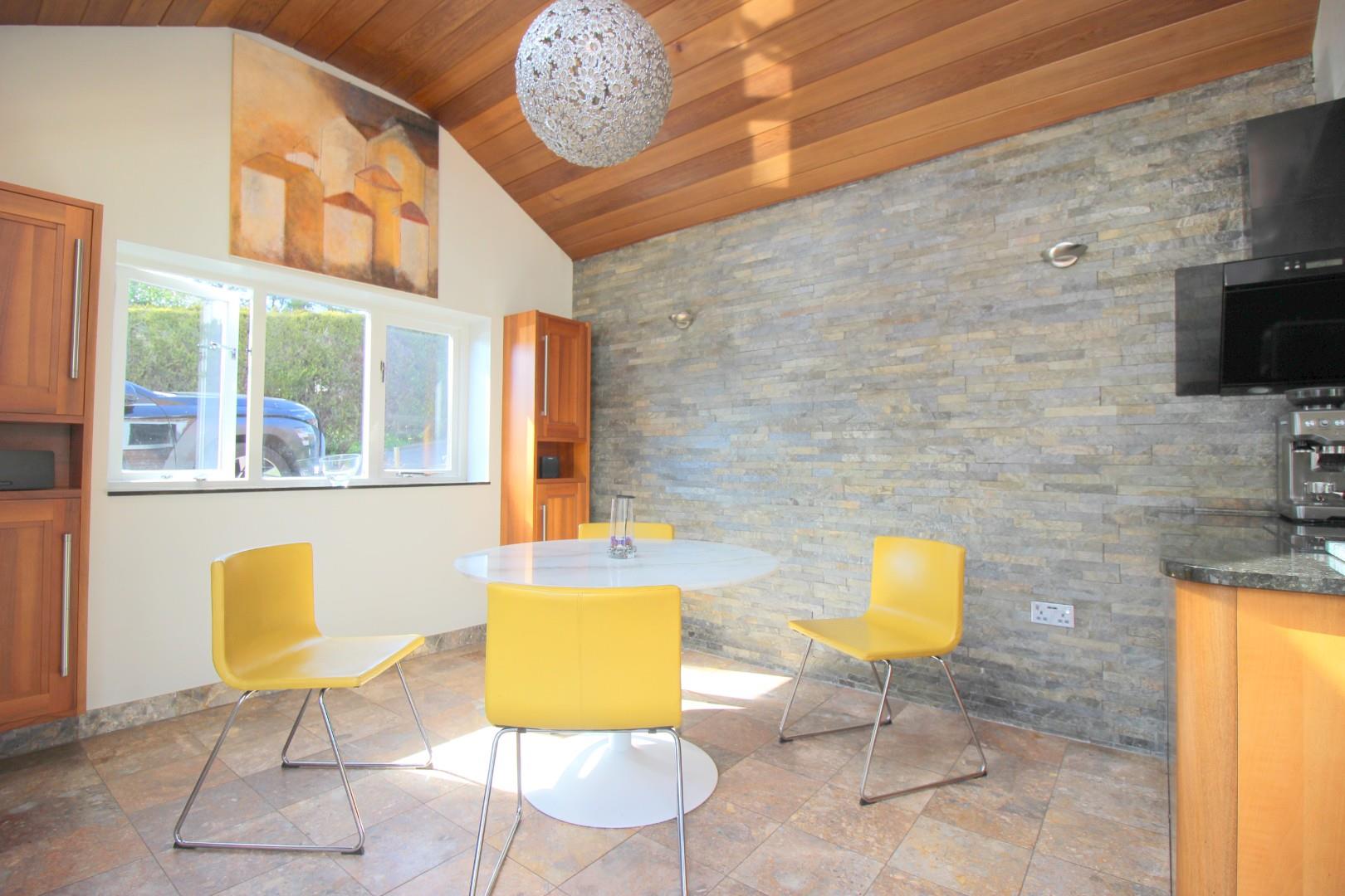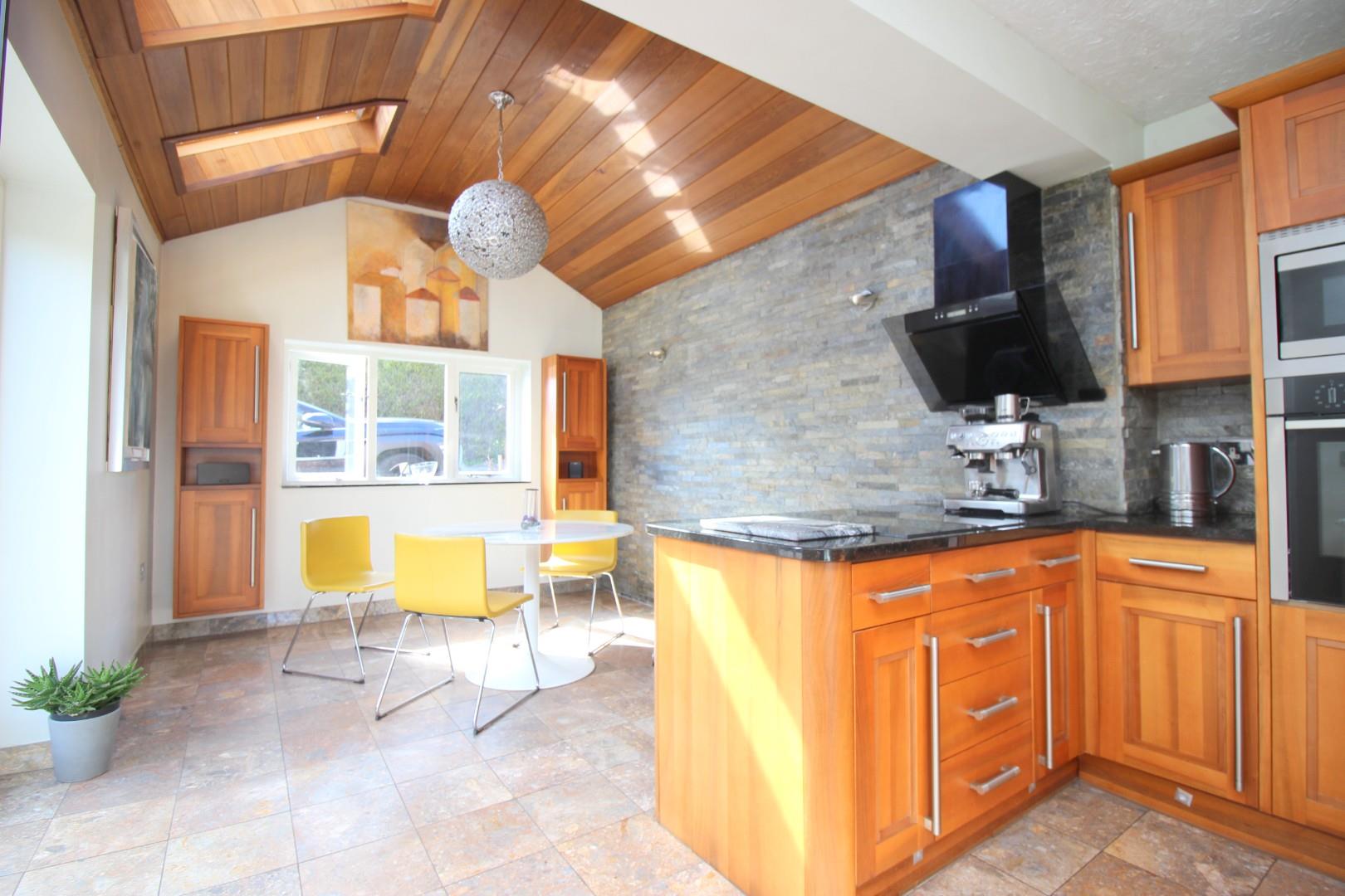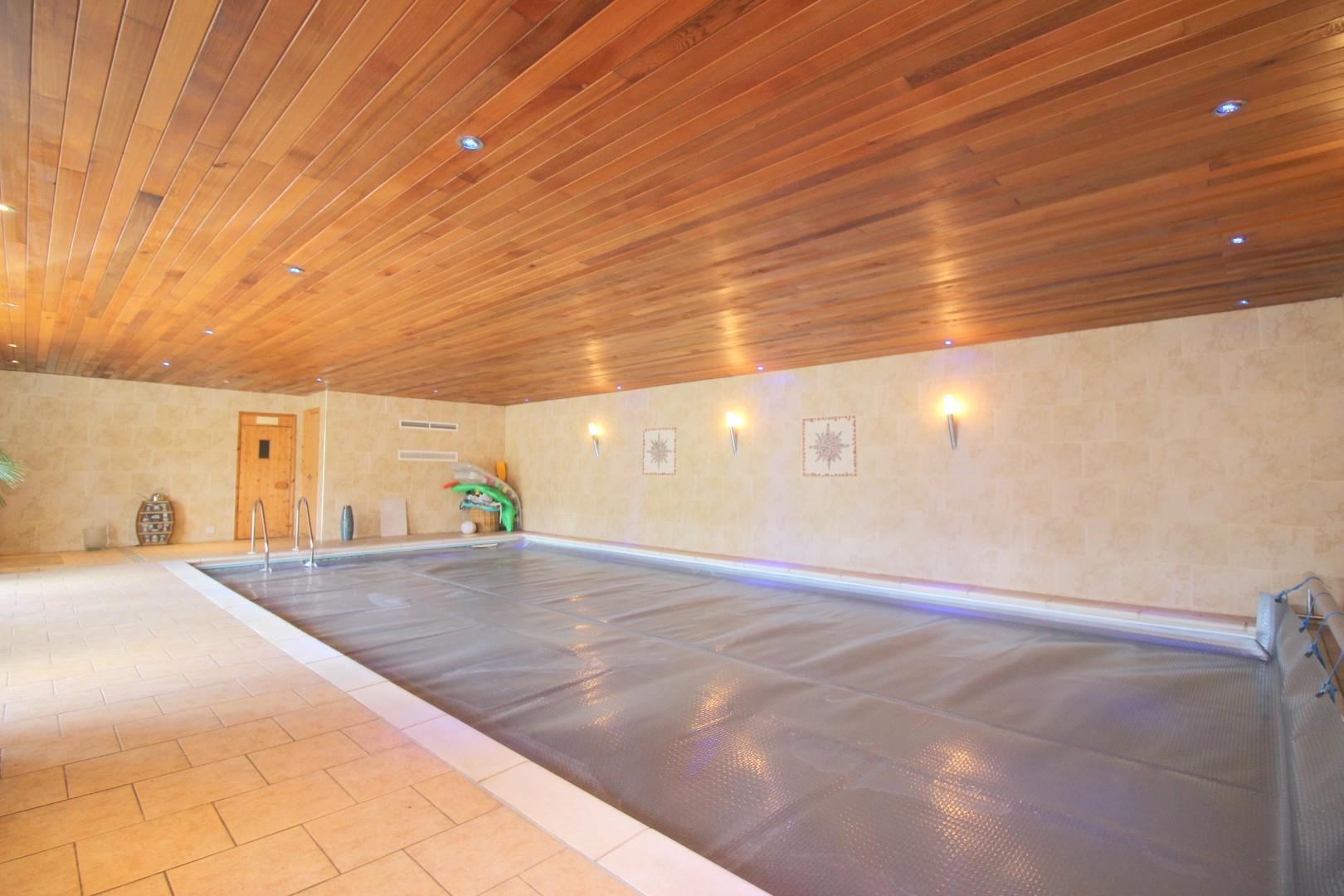 The accommodation is exceptional, featuring a bright and spacious kitchen overlooking the garden, a large living room with feature fireplace, a sizeable dining room, utility, downstairs WC, inner lobby with stair access to the annex area, and a large heated swimming pool with sauna, shower room, and boiler room – all benefitting from solar panels which contribute to energy efficiency and generate income.