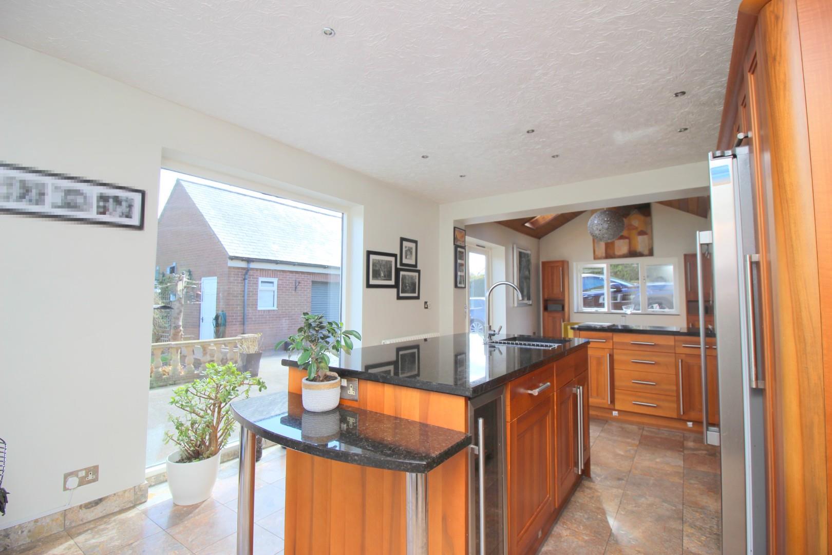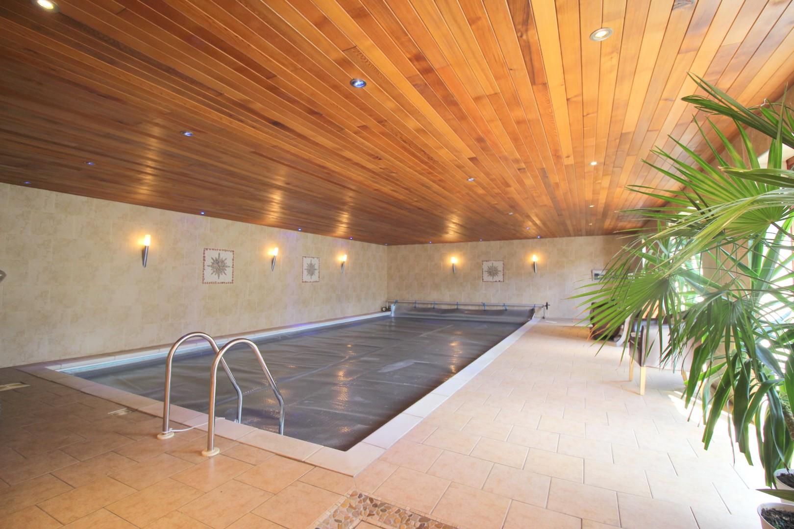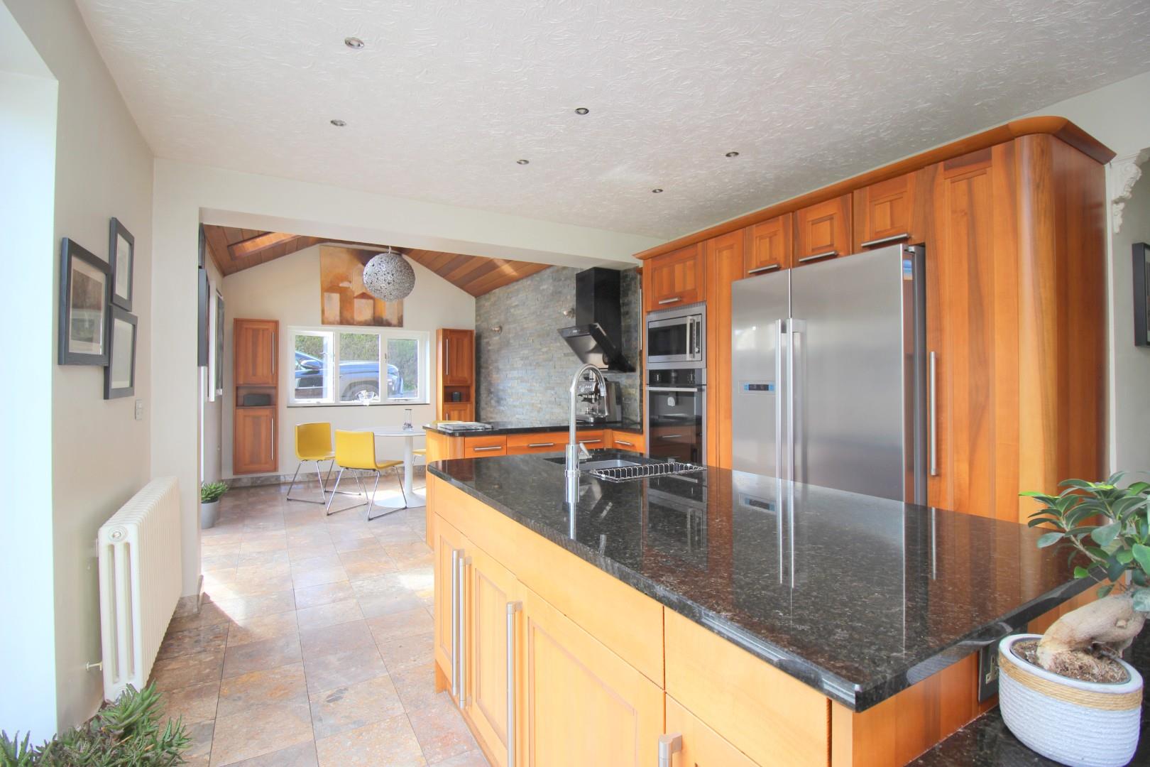 The accommodation is exceptional, featuring a bright and spacious kitchen overlooking the garden, a large living room with feature fireplace, a sizeable dining room, utility, downstairs WC, inner lobby with stair access to the annex area, and a large heated swimming pool with sauna, shower room, and boiler room – all benefitting from solar panels which contribute to energy efficiency and generate income.
