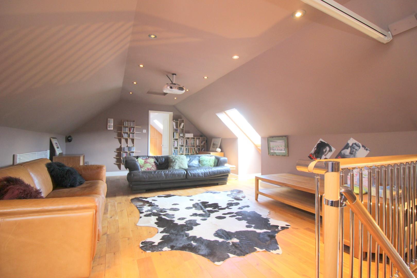 Upstairs, the main landing leads to four large double bedrooms, two with en-suites, and a stunning family bathroom. The annex section of the home is ideal for extended family or guests, with a separate lounge (currently a cinema room), a further double bedroom, and another en-suite.