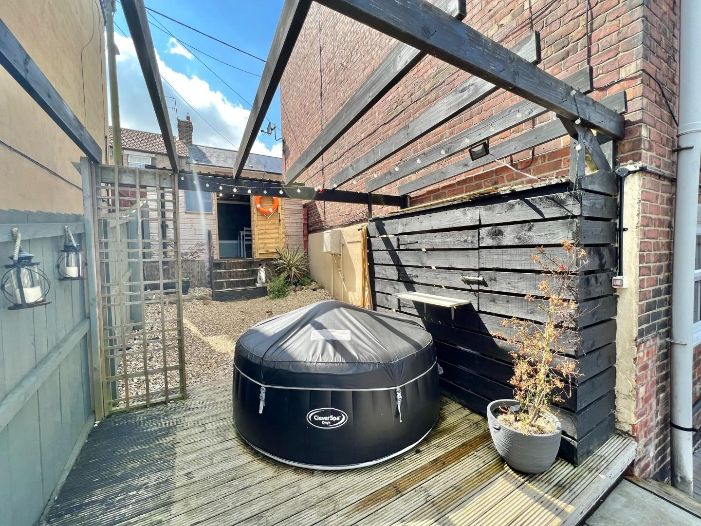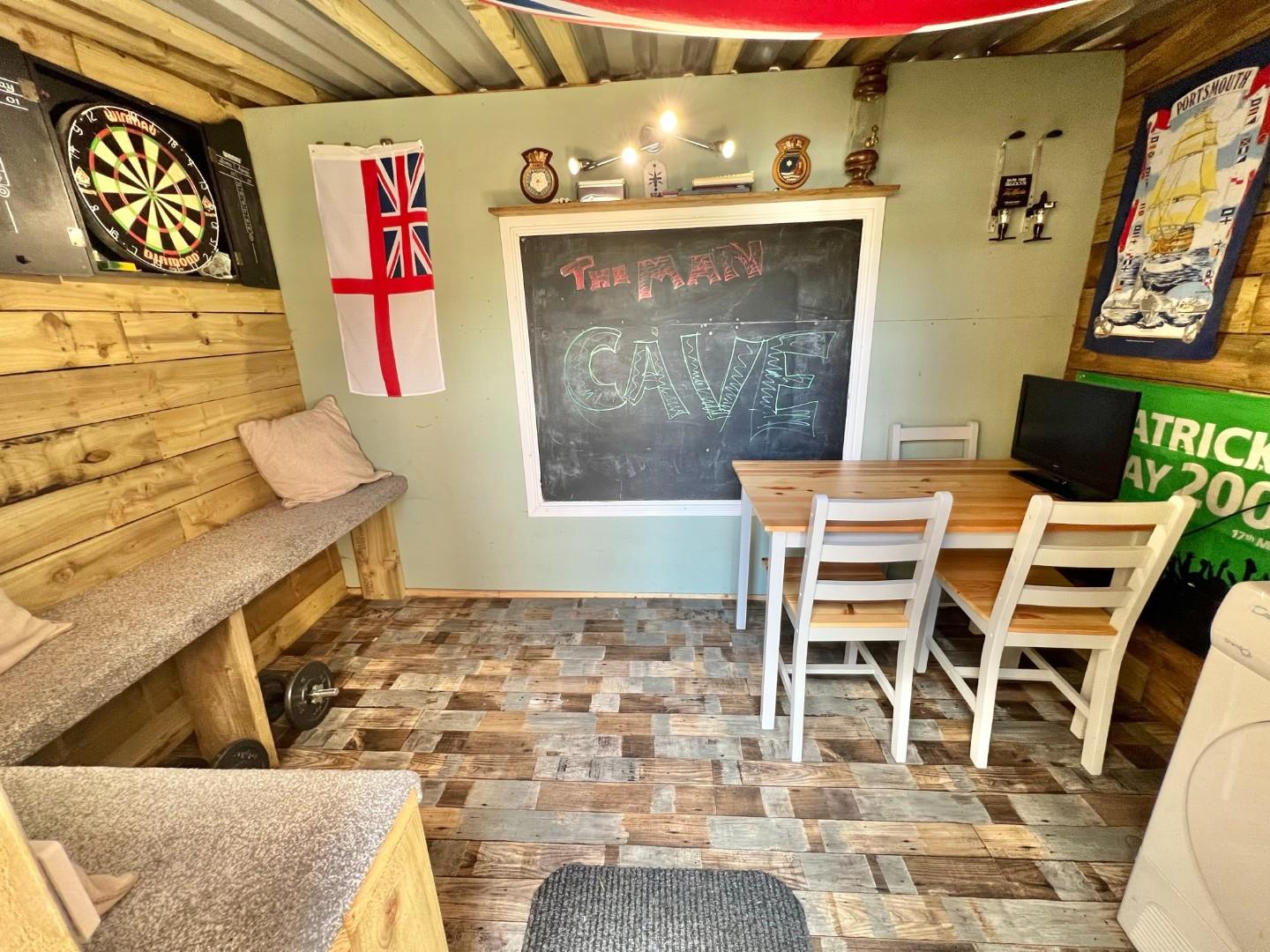 Outside there is a an enclosed garden which has been designed for easy maintenance with paved patio areas. There are timber gates opening allowing off road parking. There is a storage shed and an summer house which has electric and lighting.