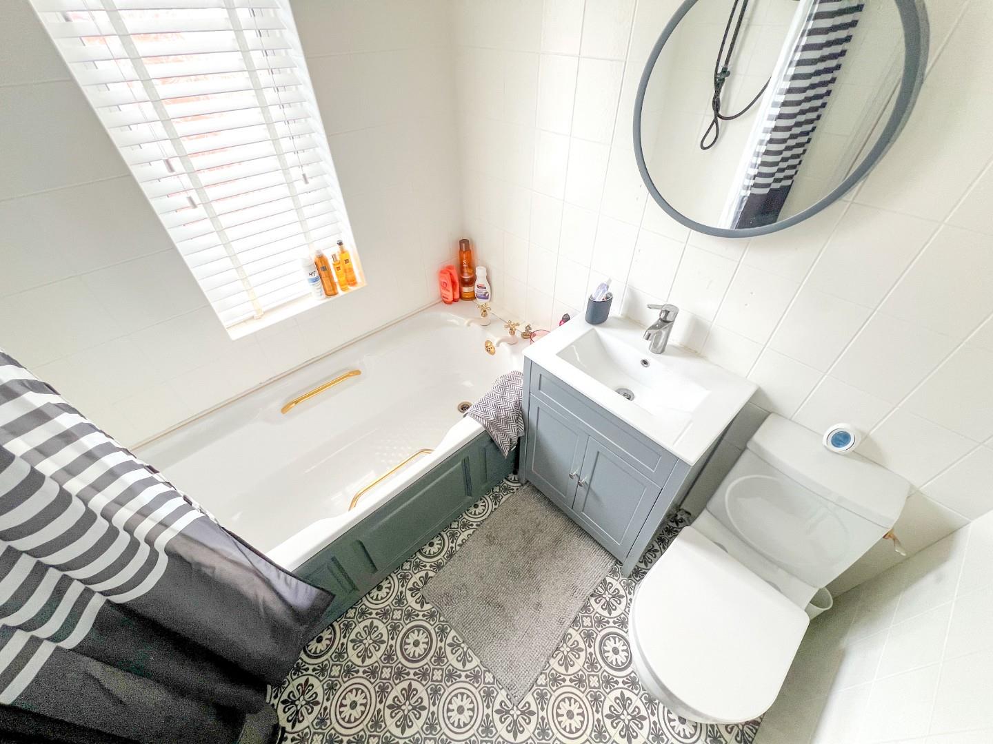 Upstairs, the accommodation includes three well-proportioned bedrooms: a sizeable master bedroom, a second double with built-in storage, and a third single bedroom ideal as a nursery, guest room, or home office. A sleek, contemporary family bathroom completes the upper level with a stylish three-piece suite.