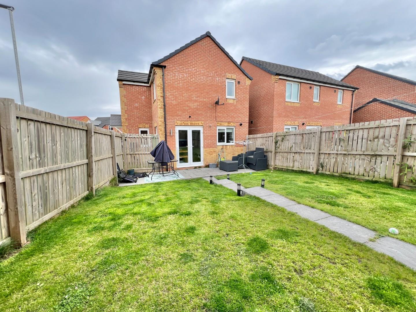 Outside the house has a lawned garden to the front and side. At the rear there is an enclosed garden which is mainly laid to lawn with patio areas. Off road parking is available via a driveway and detached garage.