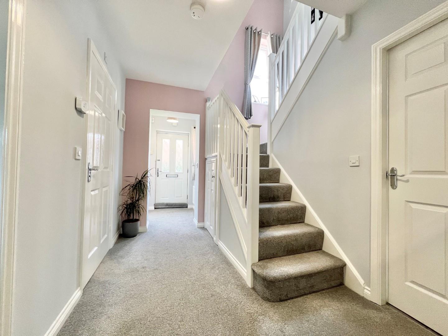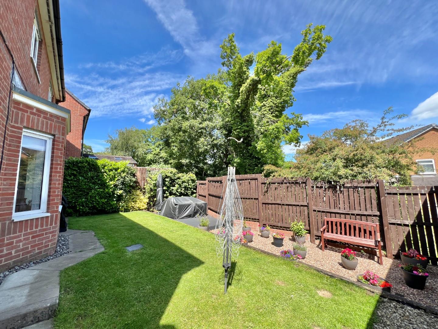 Outside the house has a double driveway and garage to the side. At the rear there is an enclosed garden which is laid to lawn with patio area.