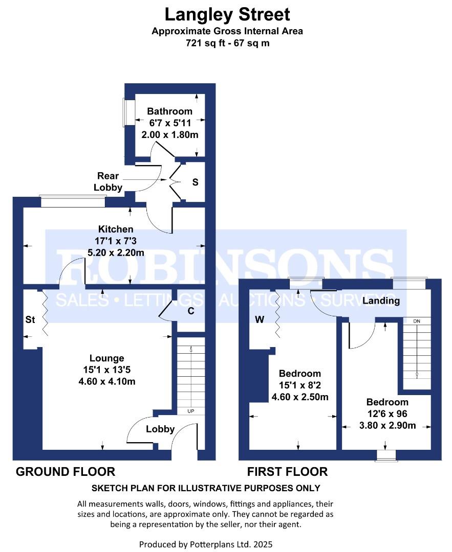 The layout comprises an entrance lobby leading into the lounge, a kitchen, rear lobby, and ground floor bathroom. Upstairs there are two well-proportioned bedrooms offering good space.