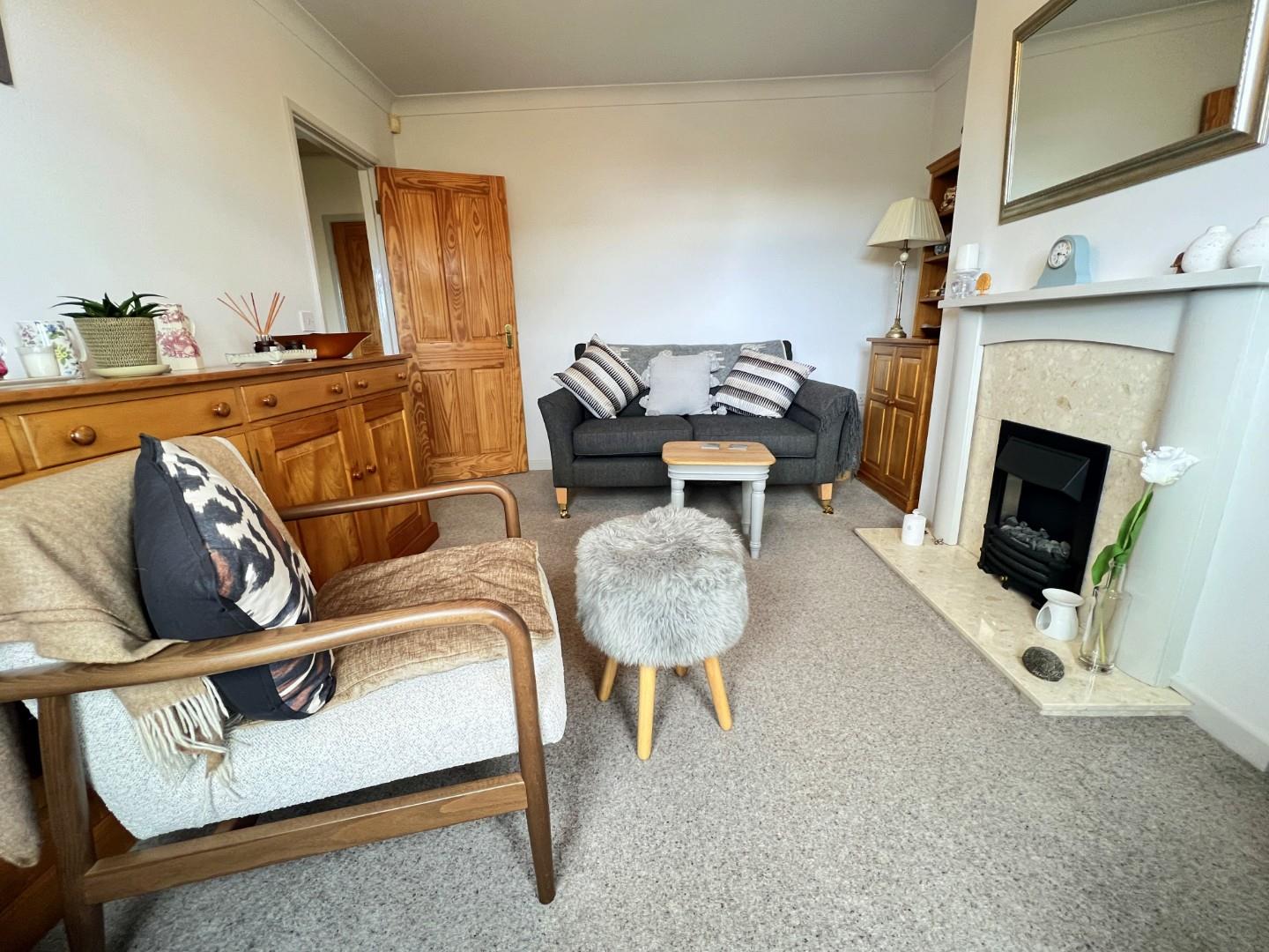 The floor plan comprises: entrance hallway, comfortable lounge, two double bedrooms, modern fitted kitchen, utility room with door to the garage, bathroom/WC with over bath shower. Outside there are front and rear landscaped gardens, driveway parking and access to the single garage. Added benefits advised by the seller include upvc double glazing, gch via replacement combi boiler, new roof 2007, new fibreglass garage roof and remote controlled garage door.