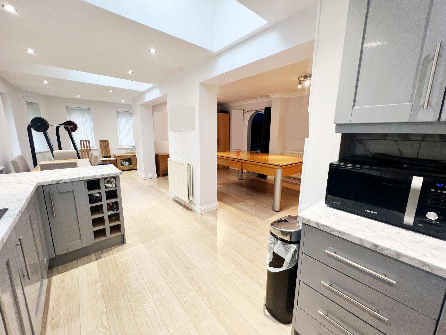 Plumbed for washing machine, space for American fridge/freezer, tiled flooring and central heating radiator.