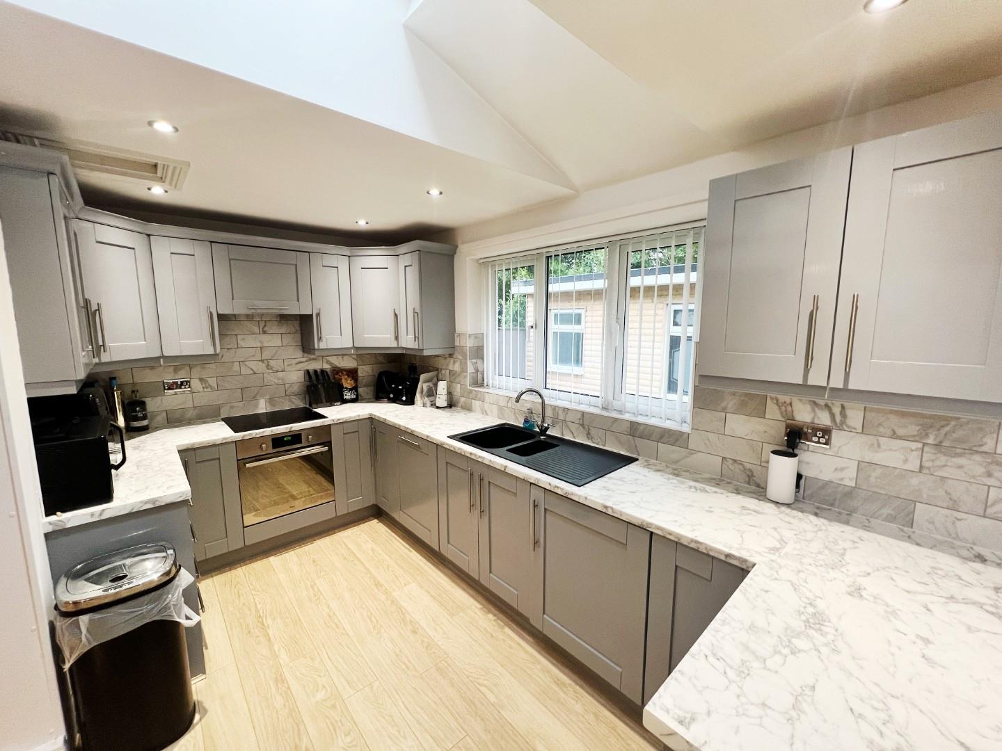 Fitted with a modern range of wall and base units, integrated oven, hob and extractor fan, sink unit with mixer tap and drainer, tiled splashbacks, integrated dishwasher and fridge, wood effect flooring, central heating radiators and Upvc double glazed Velux windows.