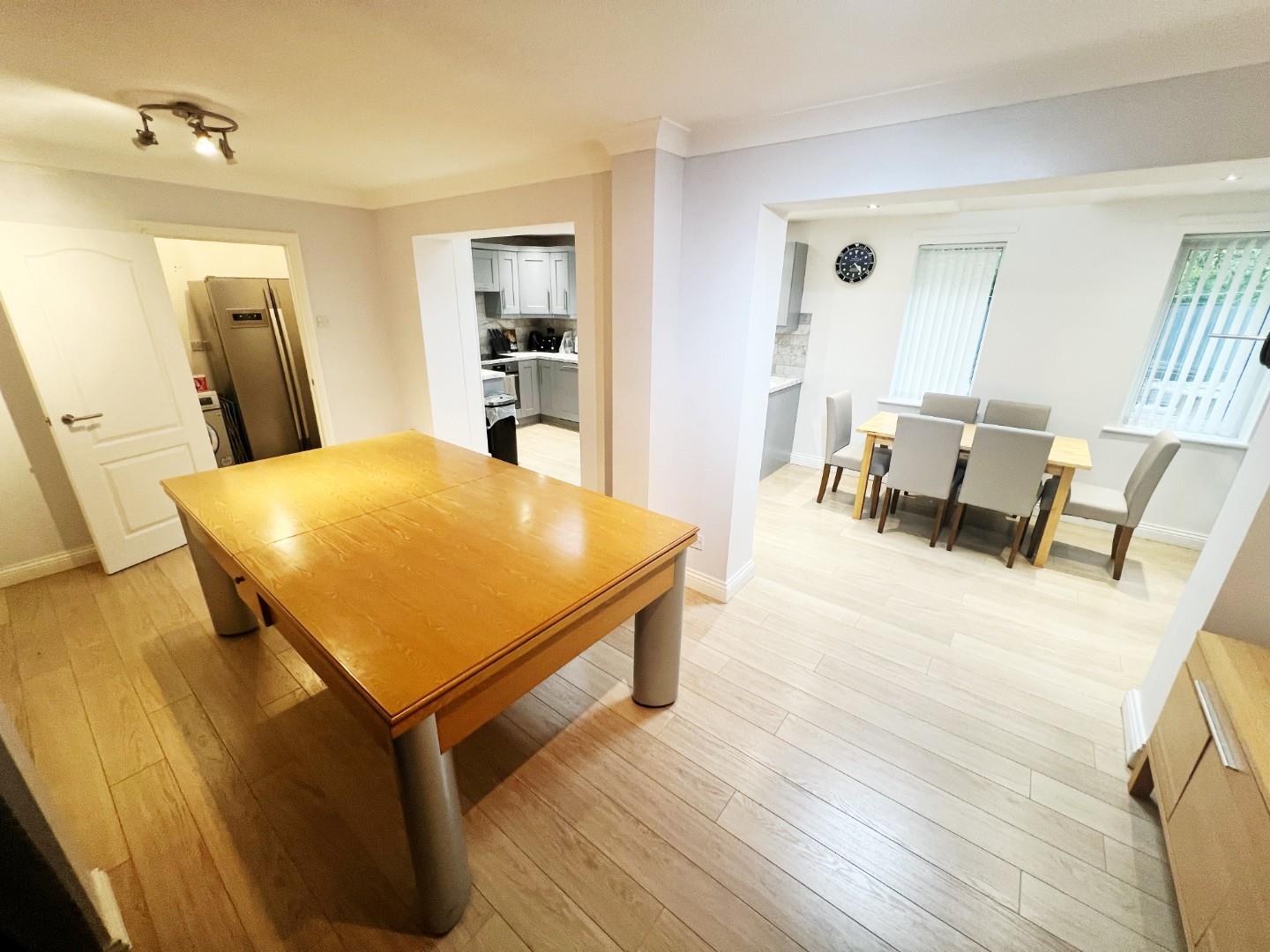 In brief the property comprises of; entrance hallway, spacious lounge, separate dining room, spacious kitchen. To the first floor are three good sized bedrooms with the master having the added bonus of fitted wardrobes and En-suite. Externally to the front elevation is a large driveway which leads to an attached garage. While to the rear there is an good sized enclosed garden, which has been designed for easy maintenance and benefits from it's very own bar area which could also be used as a home office.