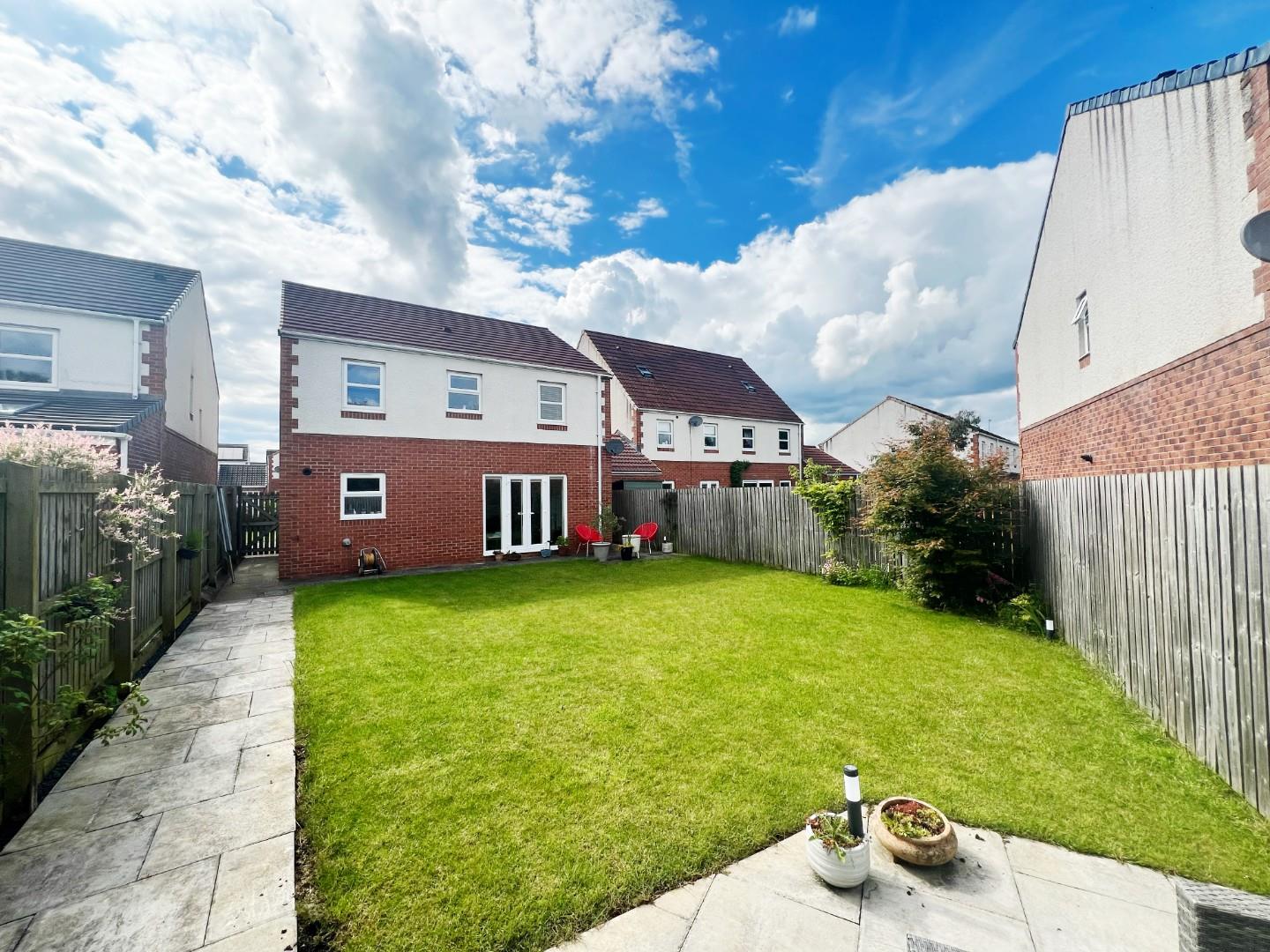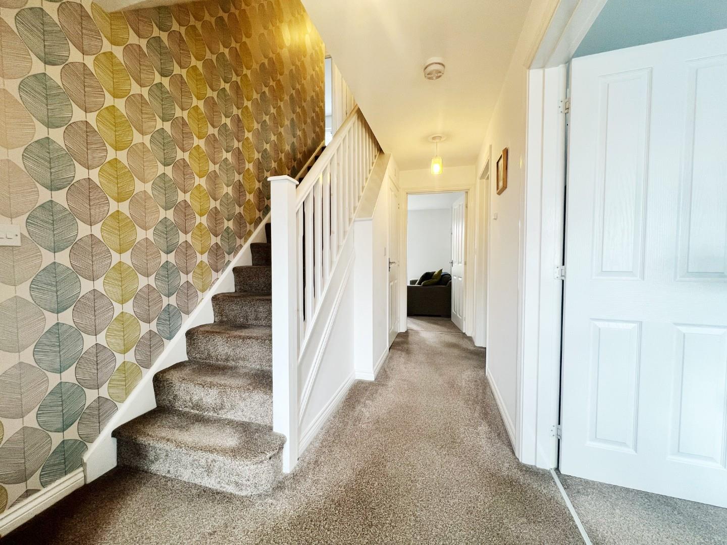 In brief, this impressive home comprises: Welcoming entrance hallway with stairs to the first floor & ground floor cloaks/wc, an impressive lounge (measuring 15ft approximately) with French doors to the rear garden, separate dining room & a lovely 17ft (approximately) breakfasting kitchen with a range of fitted wall & base units. The first floor landing boasts four double bedrooms (the master bedroom hosting its own En-suite shower room) & a family bathroom with modern three piece suite. Externally, this well proportioned home enjoys a spectacular sized, enclosed garden to the rear, whilst the front is open plan, with a double driveway leading to an integral single garage. We highly encourage thorough internal inspection in order to fully appreciate the style, layout, standard & quality of this remarkable residence for sale.