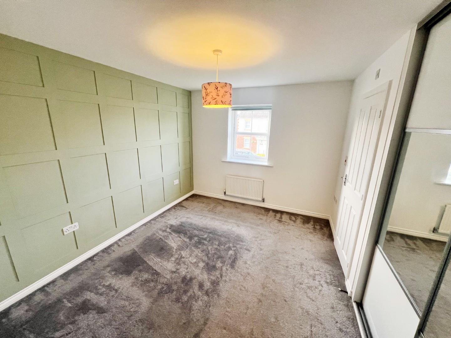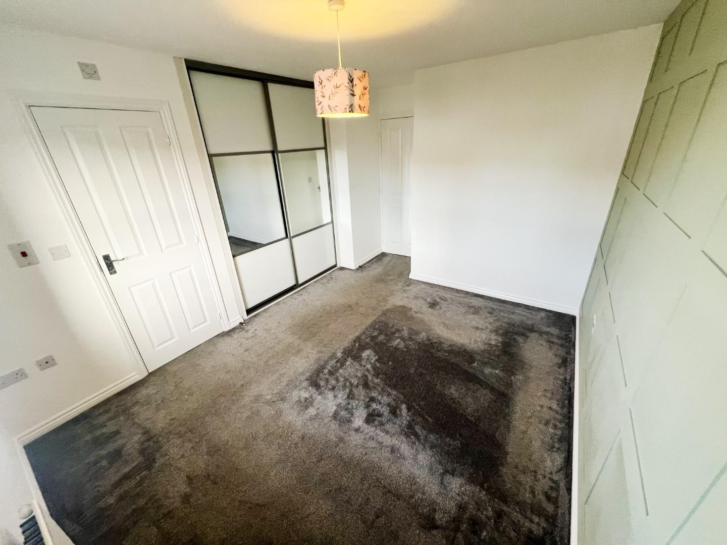 UPVC window to front elevation, single central heating radiator and built in contemporary wardrobe.