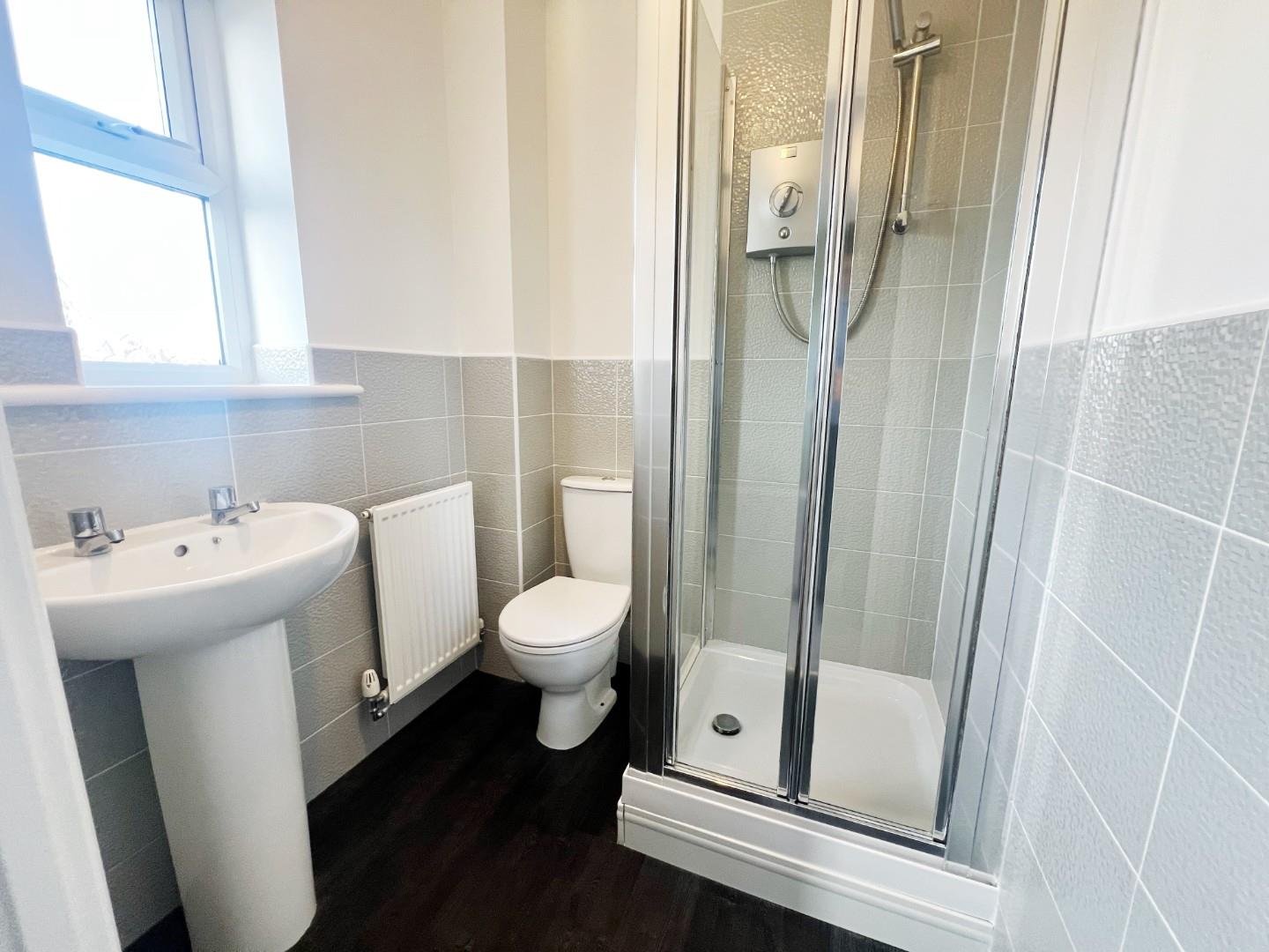 UPVC window to front elevation, single central heating radiator, low level w/c, pedestal wash hand basin, shower cubicle with electric shower, extractor fan, chrome effect fittings.